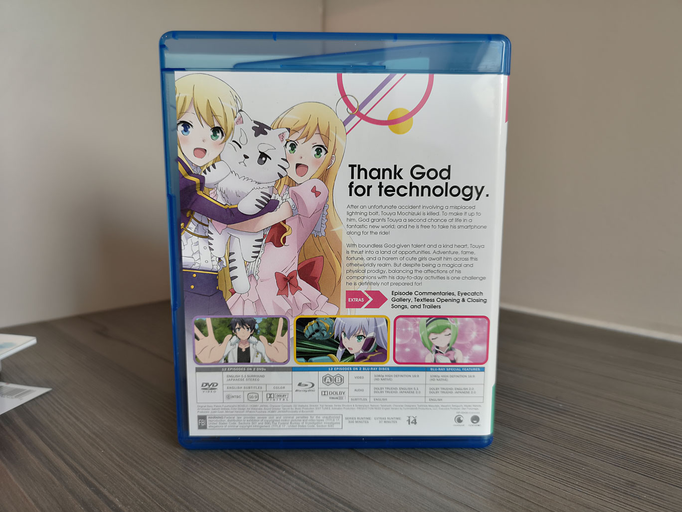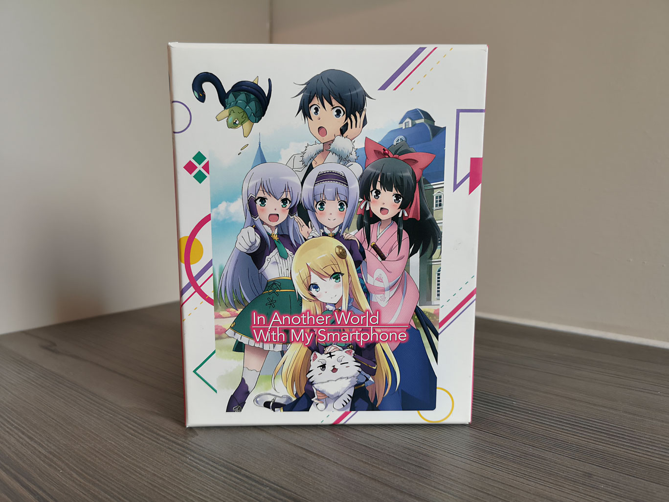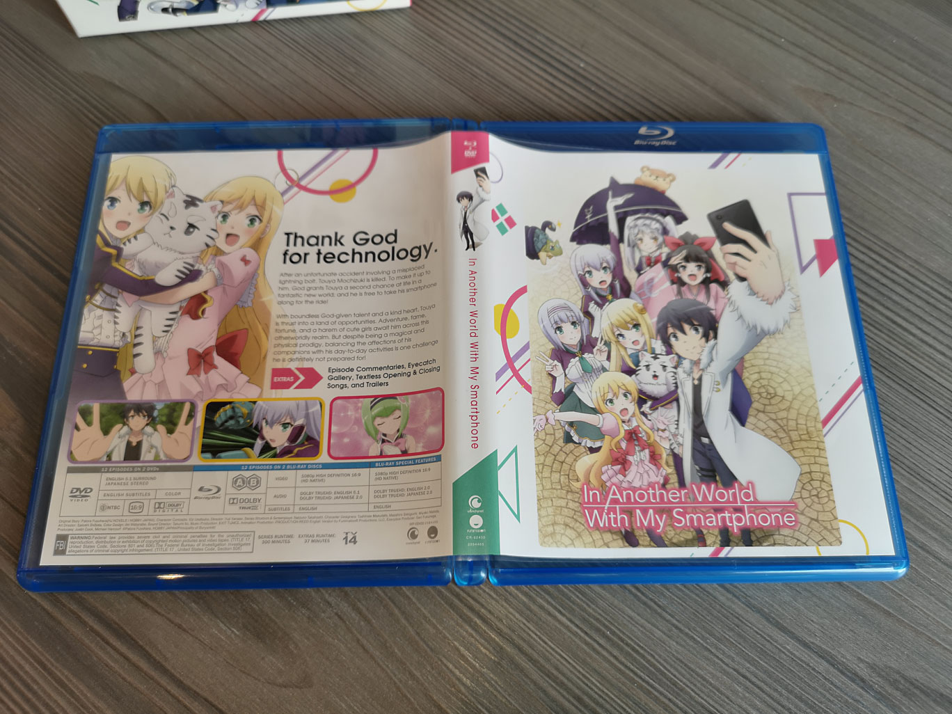 Released in July 2018, In Another World With My Smartphone from Funimation contains the entire 12 episode series across two Blu-ray discs and two DVD discs. The audio options available include the main Japanese language with English subtitles and an English dub, with the subtitles on Blu-ray locked during playback. The regions for these discs are A & B for Blu-ray (essentially playable for UK, Europe & Australia) and 1 for DVD.