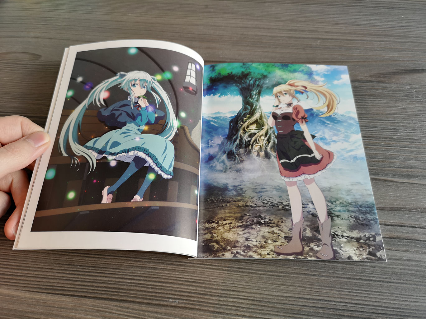 That being said, Death March to the Parallel World Rhapsody did come with some decent amount of physical content for its set. The set is based on Funimation’s attempt at making the box more shelf-friendly but also offer different content than the usual two slim Blu-ray cases in a box. So with this release we have a rigid box that comes with a single Amaray case containing the two formats as well as a 40-page Booklet. There was also a cardboard box that came with the set containing a Satou Acrylic Standee which I use for my collection.
