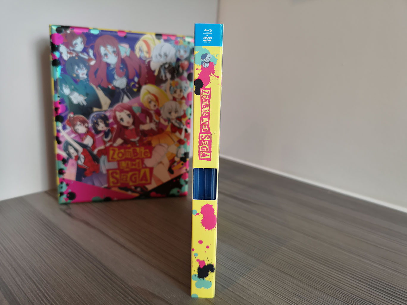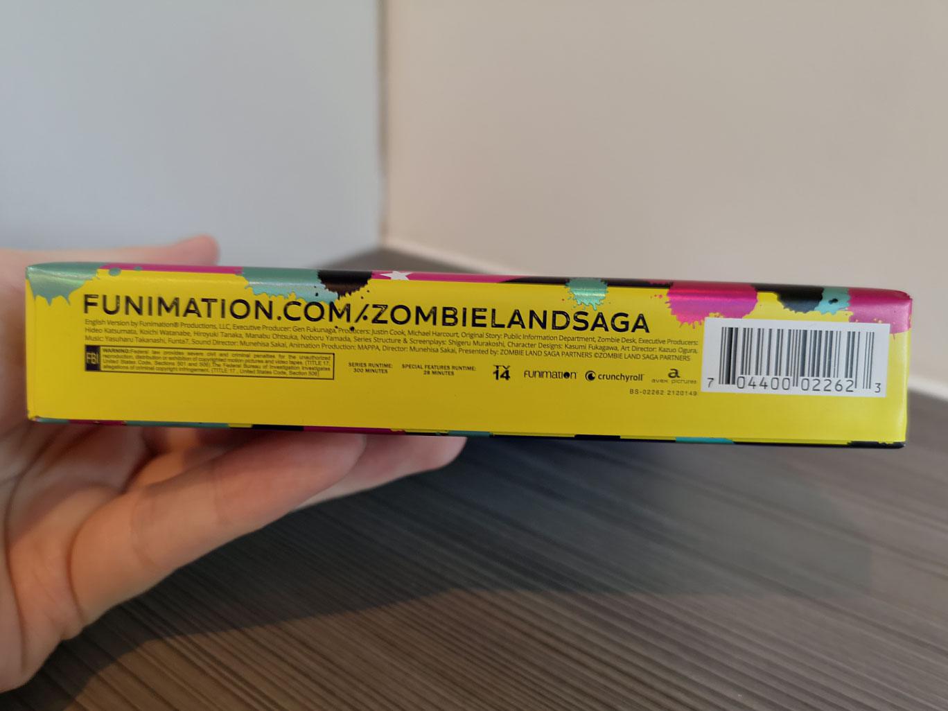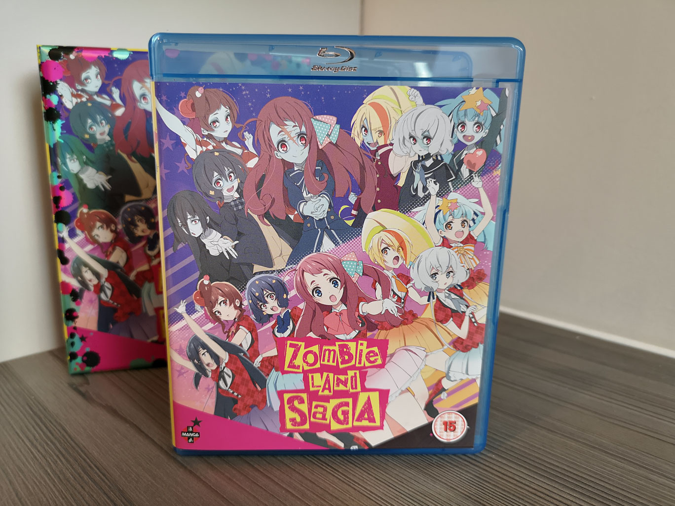 Released in February 2020, ZOMBIE LAND SAGA from Manga Entertainment contains the entire series (12 episodes total) across 2 Blu-ray and 2 DVD discs. The audio options available include the Funimation English dub and original Japanese audio with English subtitles. The white subtitles are unlockable during playback, and the regions are locked to both B and 2 NTSC respectively.