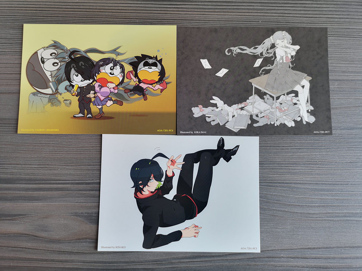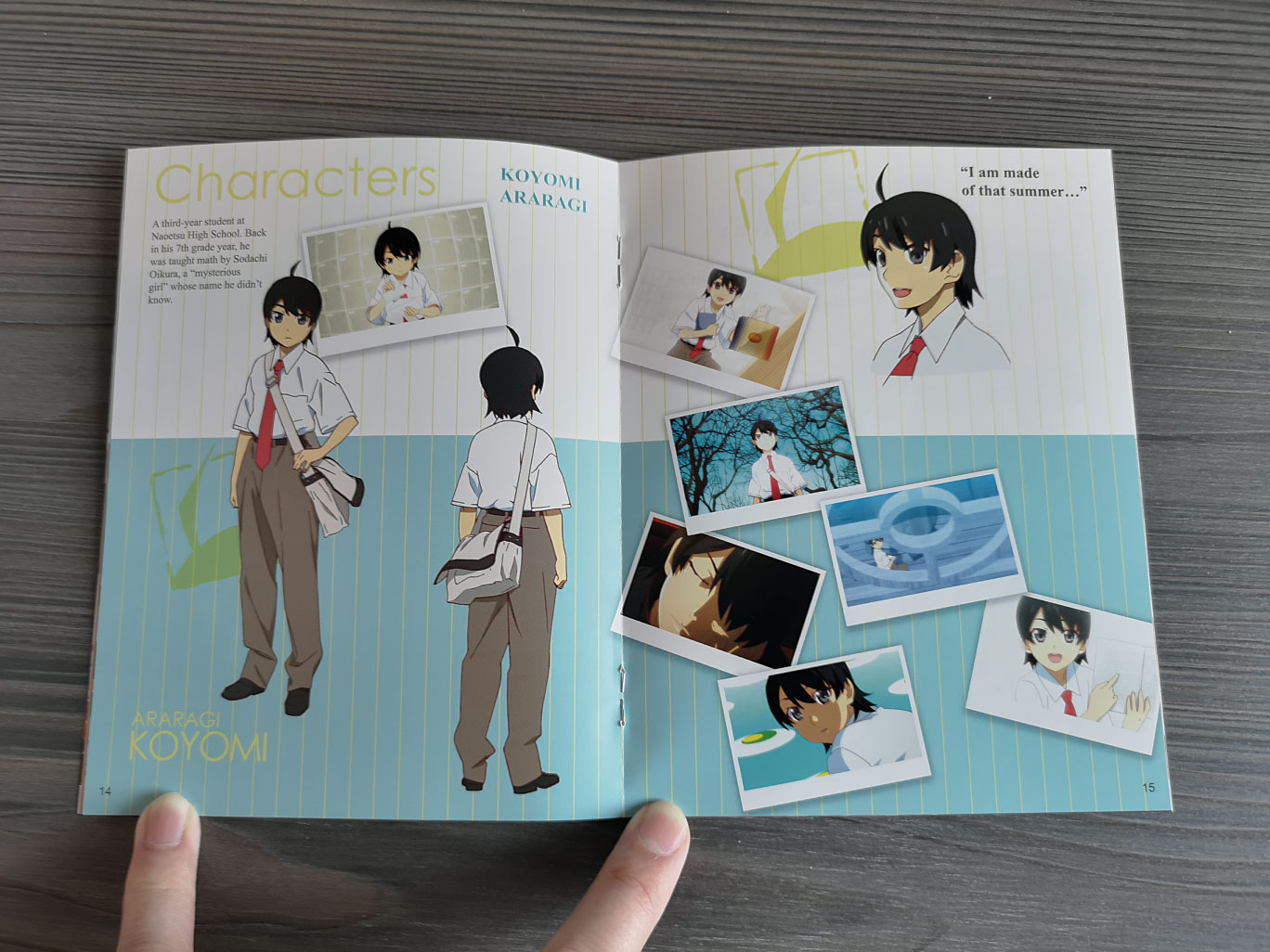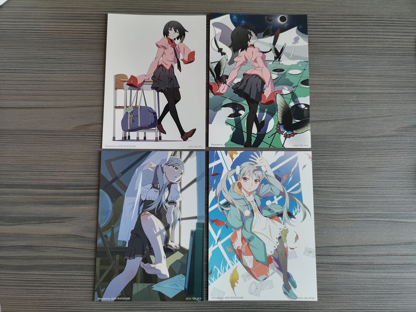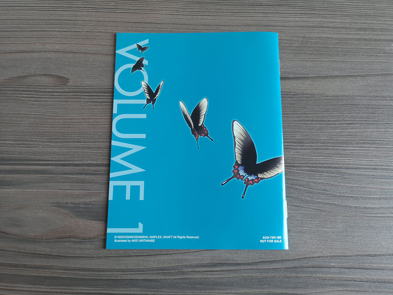 Aniplex of America released the Monogatari franchise in volume type sets that include a strong thick cardboard box with a Blu-ray Amaray case, a booklet and a set of cards. Owarimonogatari continues this trend. The Aniplex Proof of Purchase card is included with this package.