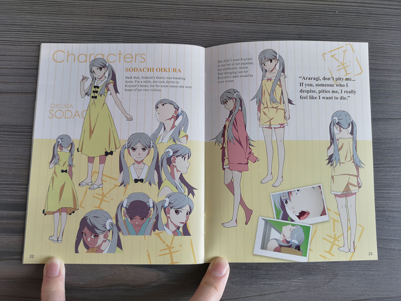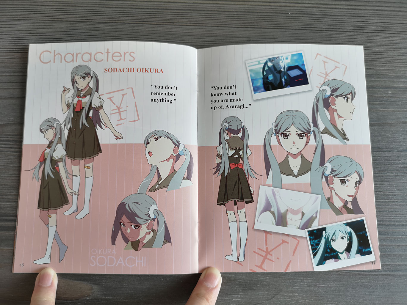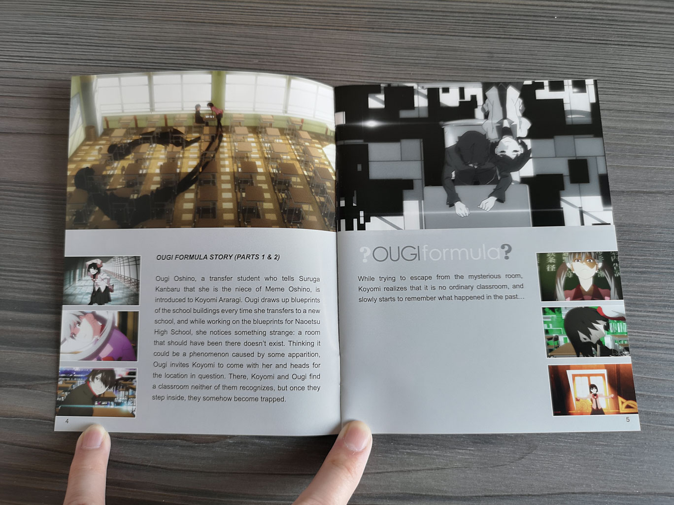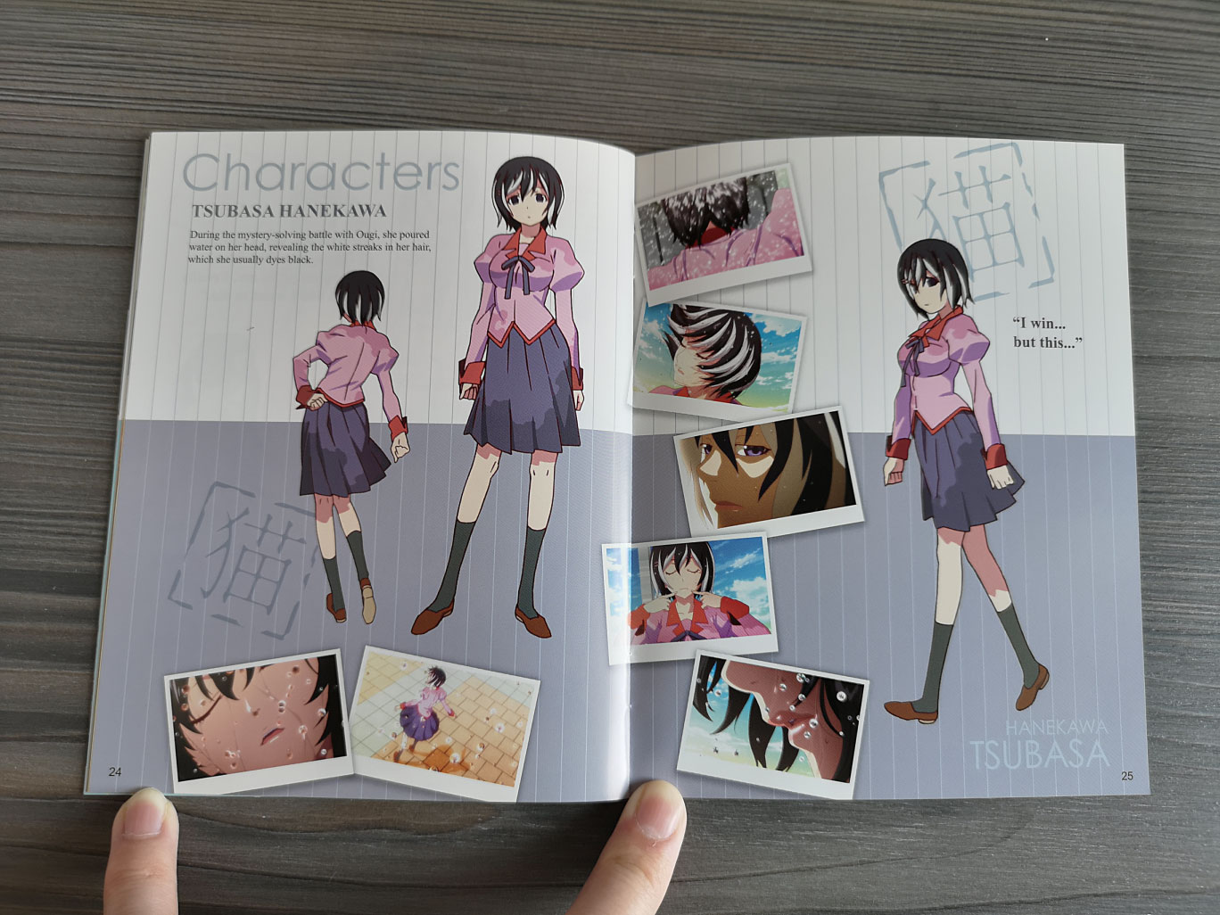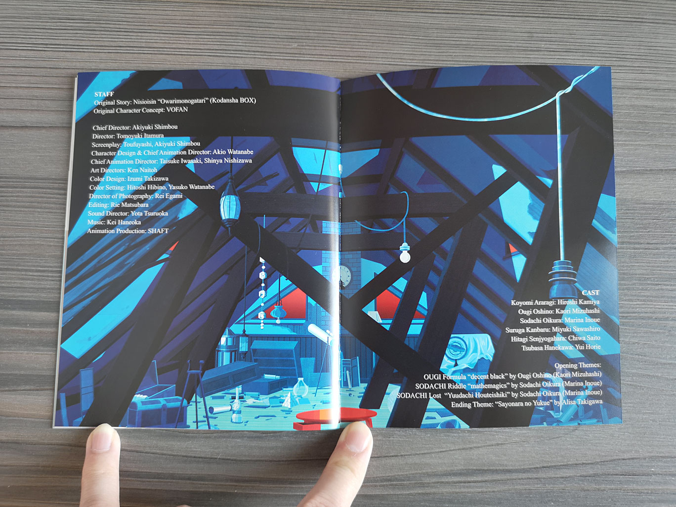The first season of Owarimonogatari has been split across two volumes. Volume 1 adapts three story arcs from the 15th novel; Ougi Formula, Sodachi Riddle and Sodachi Lost. I won’t be mentioning any spoilers, however the plot synopsis and photos of the booklet below will have them.
