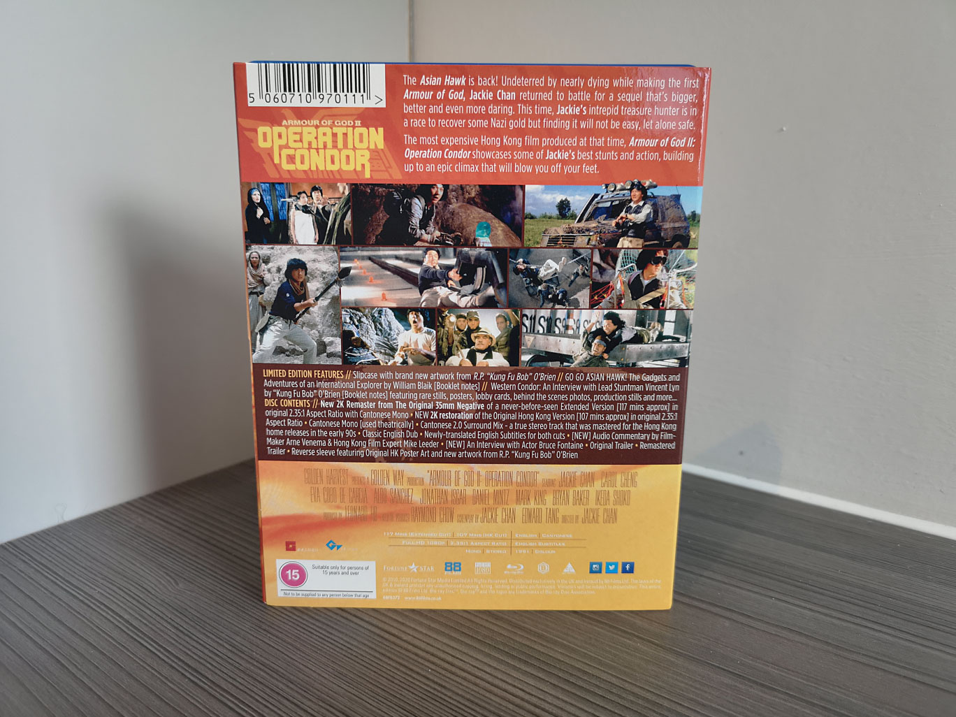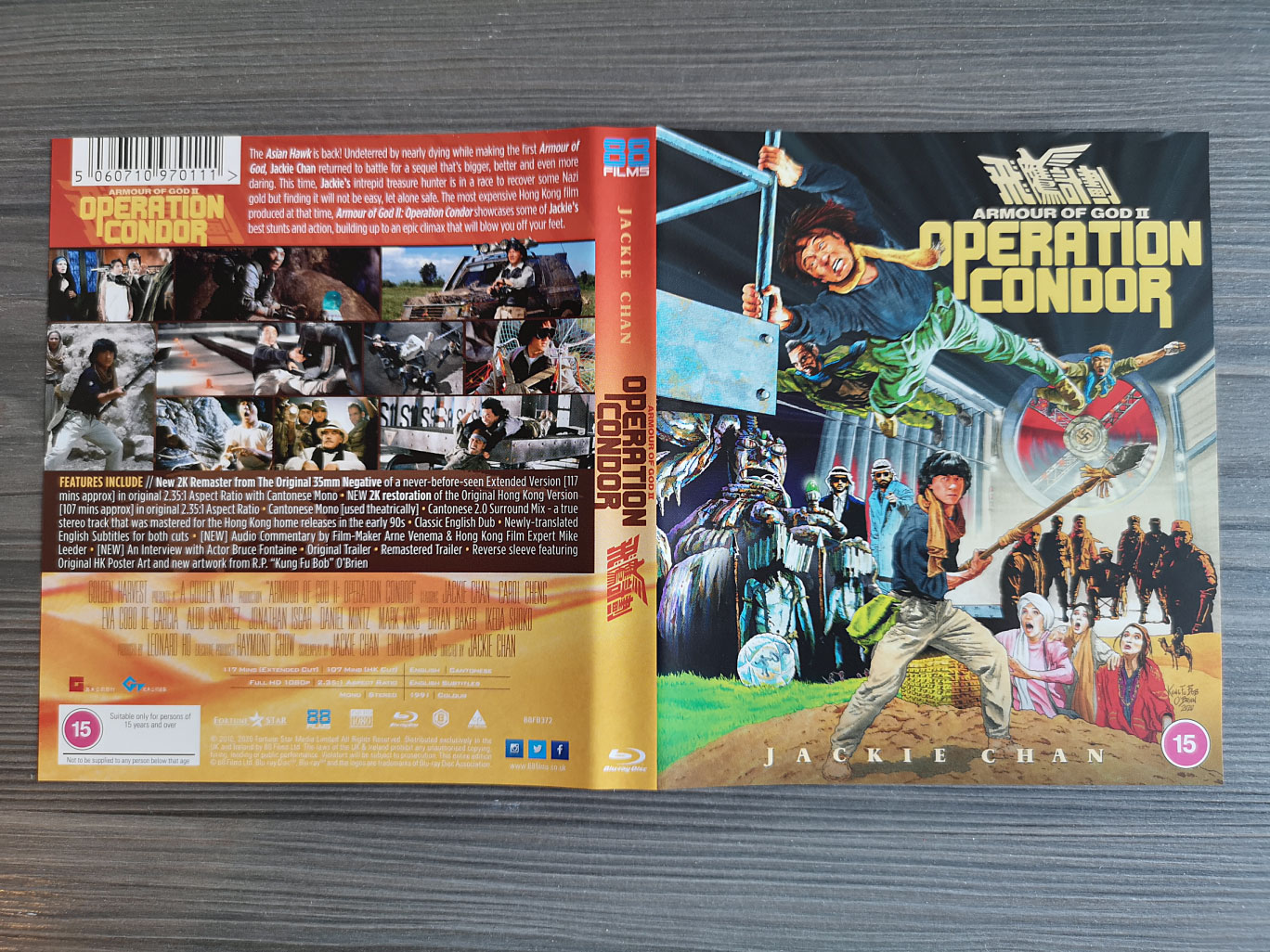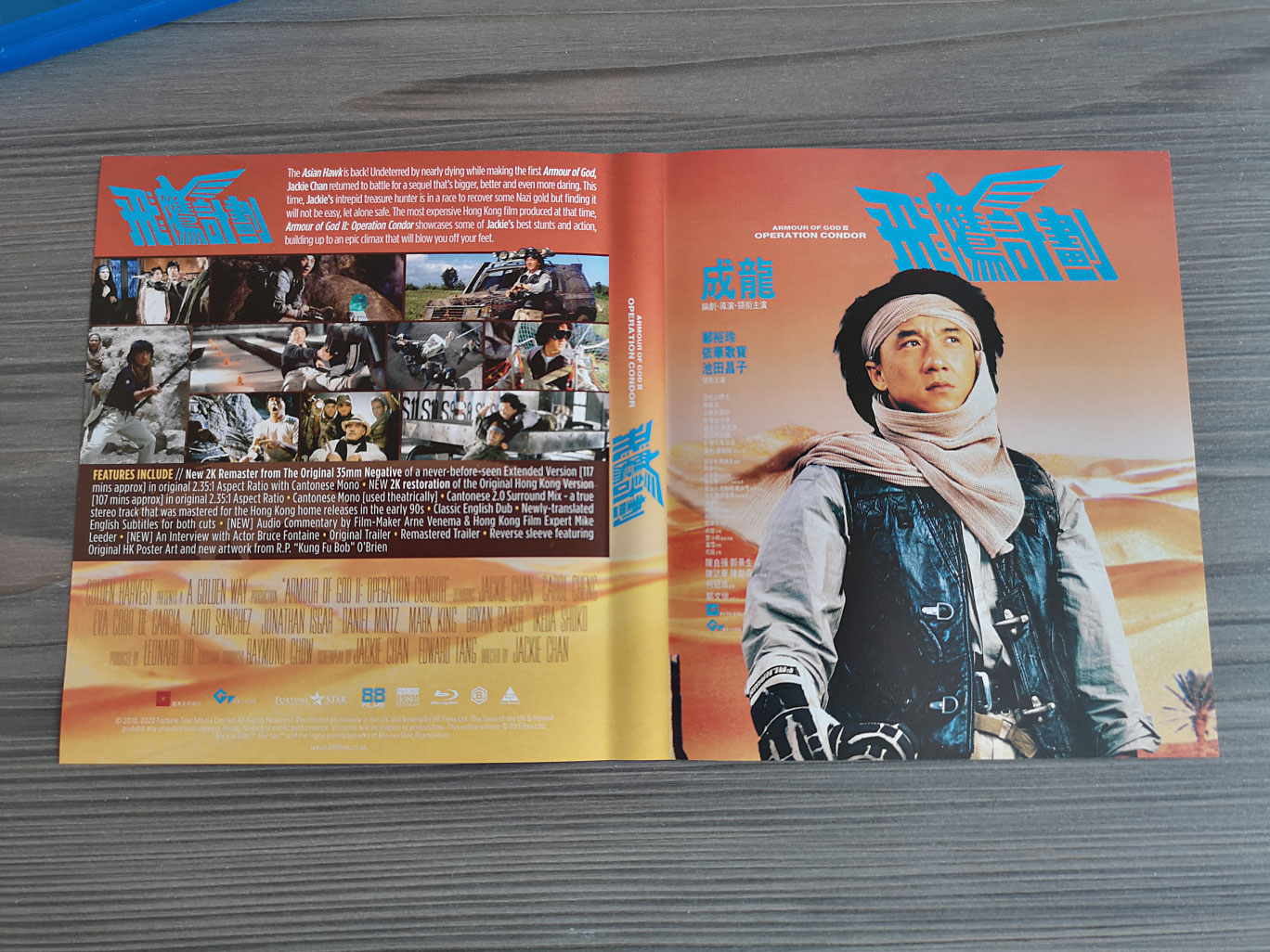 Armour of God II: Operation Condor is available to own on Blu-ray from 88 Films for the United Kingdom & Ireland. The first print edition has sold out but is available as a regular Blu-ray set on 88 Films’ official website and Amazon UK.