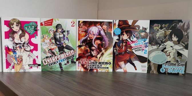 It was pure coincidence that every light novel volume I chose for this haul ended up being Isekai titles. This time I wanted to actually continue the series that I started owning, so we have the second volumes for The Hero is Overpowered by Overly Cautious, How a Realist Hero Rebuilt the Kingdom, and KONOSUBA: God’s Blessing in this Wonderful World! Also joining the light novel collection as well are the first volumes for Do You Love Your Mom and Her Two-Hit Multi-Target Attacks? and That Time I Got Reincarnated as a Slime. I found out recently that both KONOSUBA and Slime are ending (as well as OVERLORD) so now is a good opportunity to try and catch up as soon as I can.