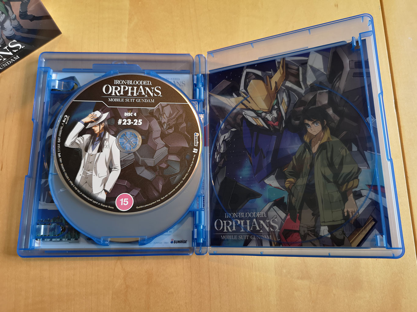 The collector’s edition release for Mobile Suit Gundam: Iron-Blooded Orphans Season 1 contains episodes 1 to 25 across four Blu-ray discs using the Funimation author. The audio options available include the main Japanese language with English subtitles and the Bang Zoom! English dub.