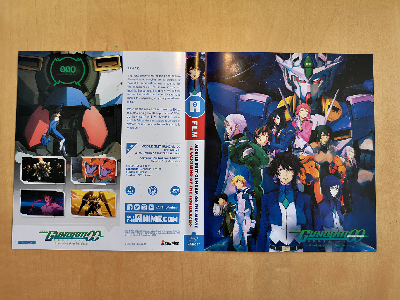 The collector’s edition release for Mobile Suit Gundam 00 the Movie: A Wakening of the Trailblazer & 00: Special Edition contains the film and 3 OVA episodes across four Blu-ray discs using the Nozomi Entertainment author. The audio options available for the film include Japanese with English subtitles and the Ocean Productions/Bandai Entertainment English dub. The 00: Special Edition OVAs were never dubbed before and thus will only be accessible in Japanese with English subtitles.
