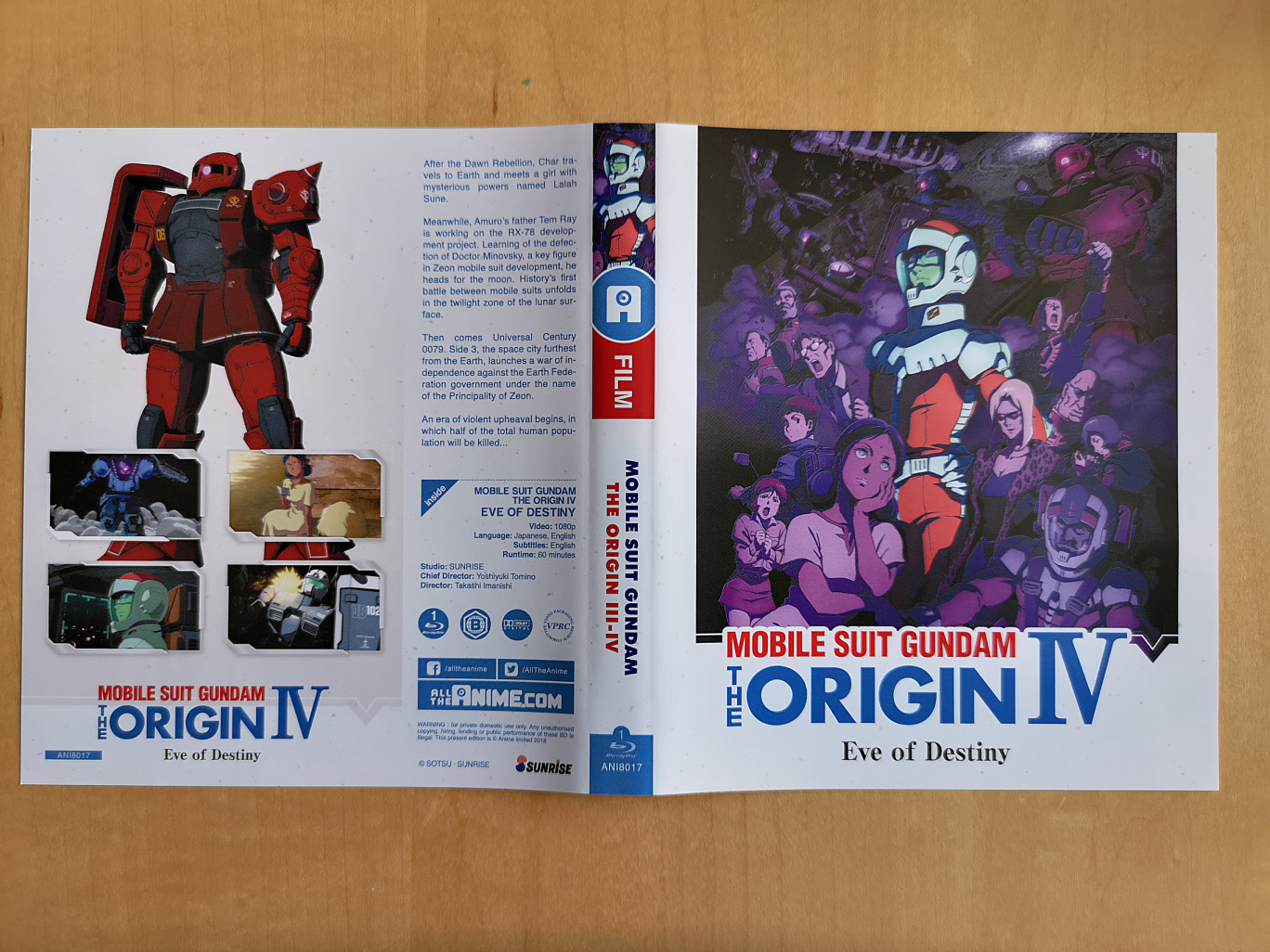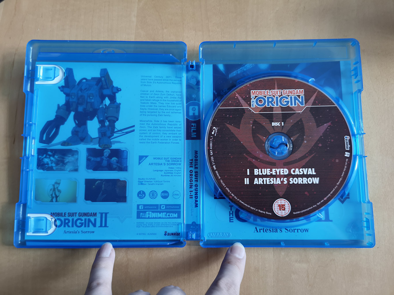 The OVAs featured in Mobile Suit Gundam: The Origin I-IV: Chronicle of Char and Sayla are I: Blue Eyed Casval (I 青い瞳のキャスバル, I Aoi Hitomi no Kyasubaru), II: Artesia’s Sorrow (II 哀しみのアルテイシア, II Kanashimi no Aruteishia), III: Dawn of Rebellion (III 暁の蜂起, III Akatsuki no Hōki) and IV: Eve of Destiny (IV 運命の前夜, IV Unmei no Zen’ya). All were first released theatrically in Japan on February 2015, October 2015, May 2016 & November 2016 respectively.