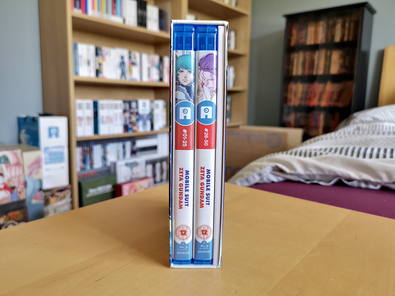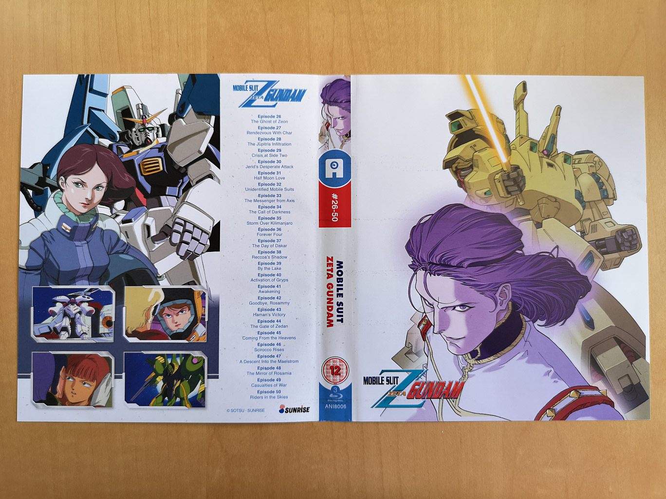 Mobile Suit Zeta Gundam‘s UK collector’s editions continues the same format as the previous Gundam series. Part 1 comes with a rigid box that has unique artwork and free of any information or BBFC content. The box itself will house both parts of the series.