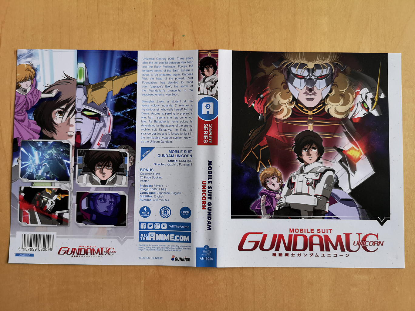 Mobile Suit Gundam Unicorn keeps the UK Gundam collection going with its traditional collector’s edition rigid box, housing an Amaray case for the discs as well as a few physical items – a booklet and a poster. The SRP was £59.99 and received the usual 1000 units in total.