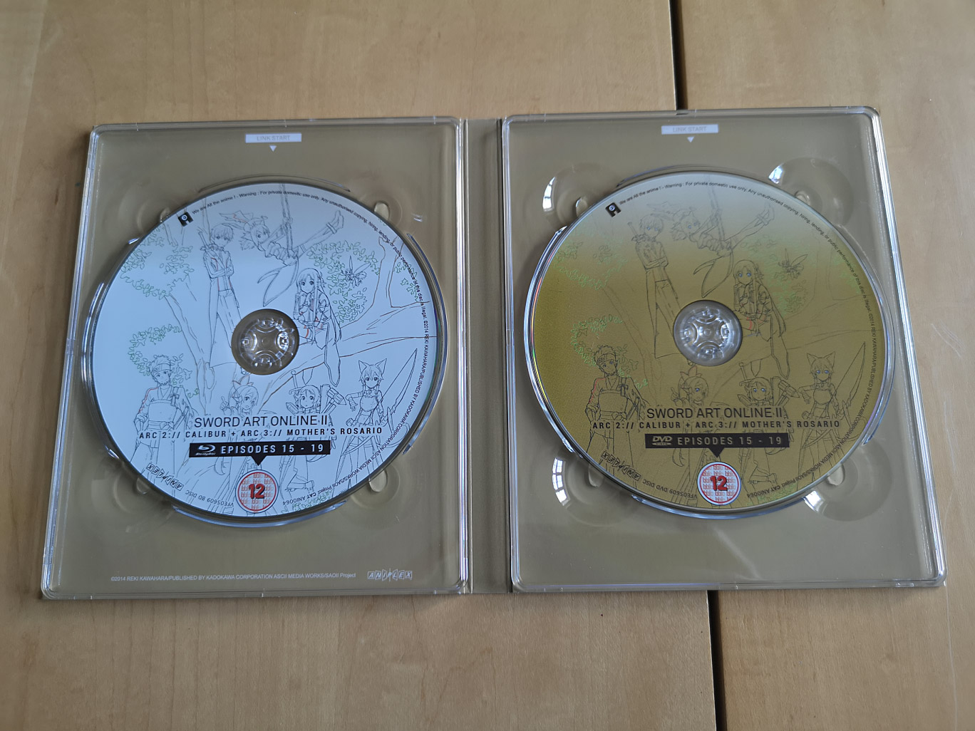 The collector’s edition releases for Sword Art Online II were split across four parts for the UK & US. The first part covers episodes 1 to 7, the second part covers episodes 8-14, the third part covers episodes 15-19 and the fourth part covers episodes 20-24. Each part has the episodes on a single Blu-ray and DVD disc. The encode and authoring were done by Madman. The audio options available for the series include Japanese with English subtitles and the Bang Zoom! English dub.