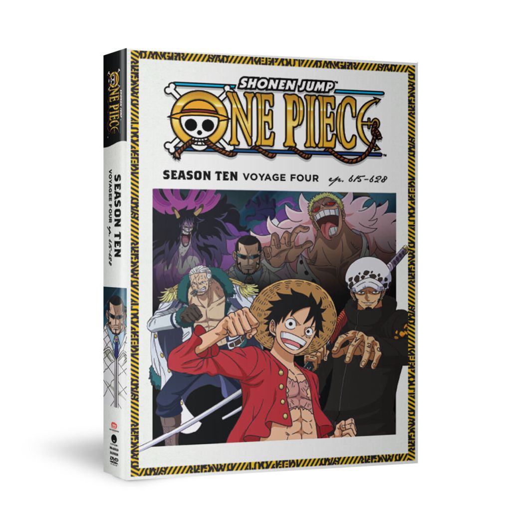 | One Piece Season 10 Voyage 4 $39.98 SRP / Regular DVD release English & Japanese audio with English subtitles Episodes 615-628 |