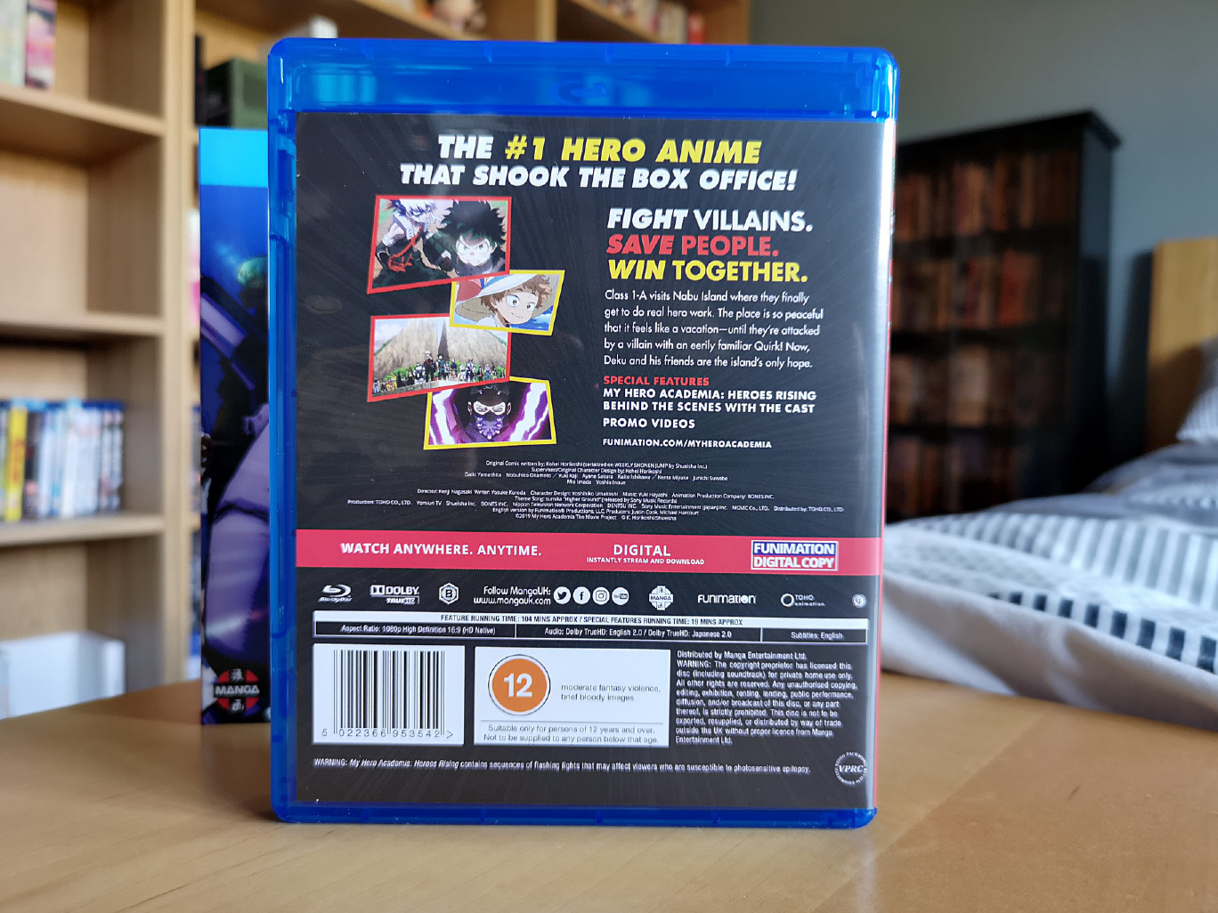 My Hero Academia: Heroes Rising was licensed by Funimation for the US, Canada, UK & Ireland territories with the UK & Ireland distributed by Manga Entertainment. With its theatrical release in February 2020, the home video release came later in the year with a limited edition steelbook and a regular edition. As I have the other My Hero Academia Blu-rays in regular edition style, I decided to stick with consistency (though the Manga Entertainment designers didn’t take into consideration the consistency of the Blu-ray banner compared to how they handled Two Heroes).