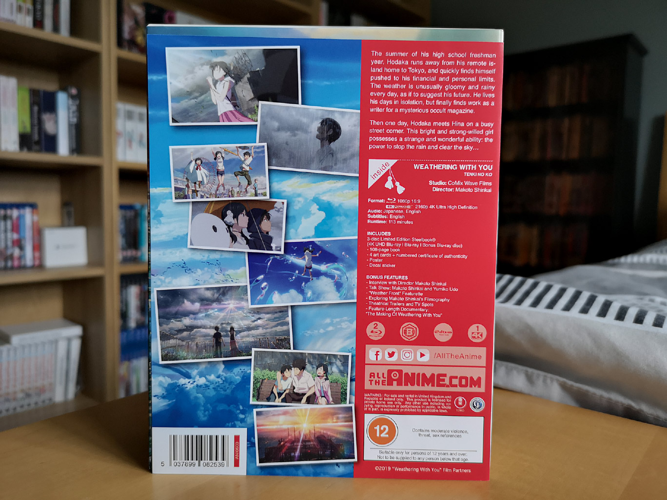 The deluxe edition variant release for Weathering With You is available on a single 4K Ultra HD disc and Blu-ray disc with an additional Blu-ray disc for additional bonus features. The encode and authoring were done by GKIDS.
