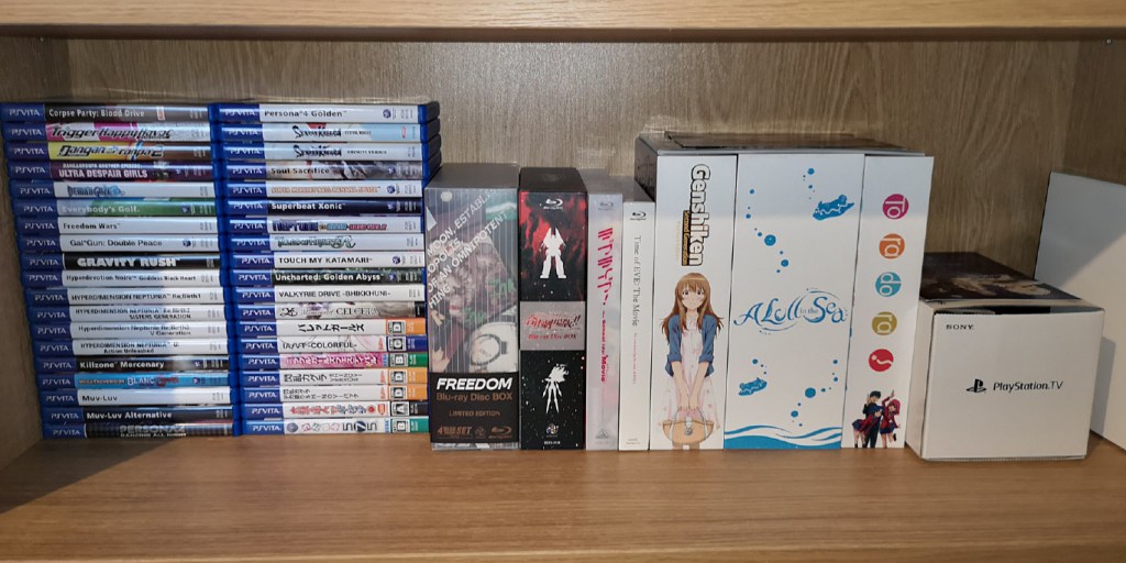 The final part of my collection is the small selection of physical visual novels for PC, as well as a couple anime sets that were sized differently to where they could not fit with the others. The Perfect Blue Ultimate Edition for instance is larger than the NIS America A3-sized sets so this was the only suitable slot at the moment. There’s nothing new with these parts.