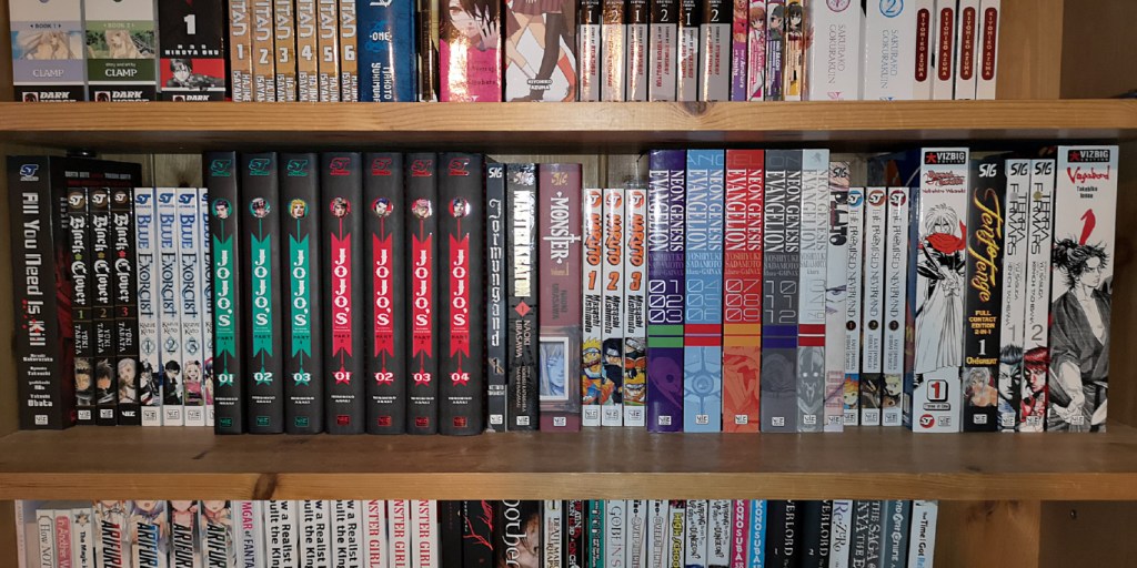Next we are now on the old bookshelf which, as you may have guessed, is dedicated to the books for the most part. The first few rows have manga from publishers Dark Horse, Kodansha Comics, Square Enix, Yen Press and Viz Media.