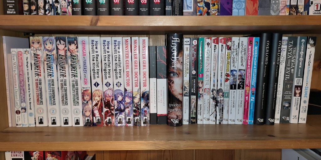 Next we have the light novels. This section is a bit of a messy one because I acquired over the years a number of series with only their first volumes, with the exception of ARIFURETA last year. This year I have managed to get a few more volumes than the usual.
