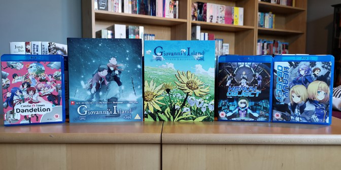 So before the sale was coming to a close I decided to order a few items that I was interested in owning. Each of these were below £10, with the overall package costing around £19. The first is a series that I had expected to appear in the sale last year, Castle Town Dandelion, so I grabbed that in this sale. The second is Giovanni’s Island with its ultimate edition Blu-ray set which took me about five to six years to finally acquire given there’s no title on the spine heh.