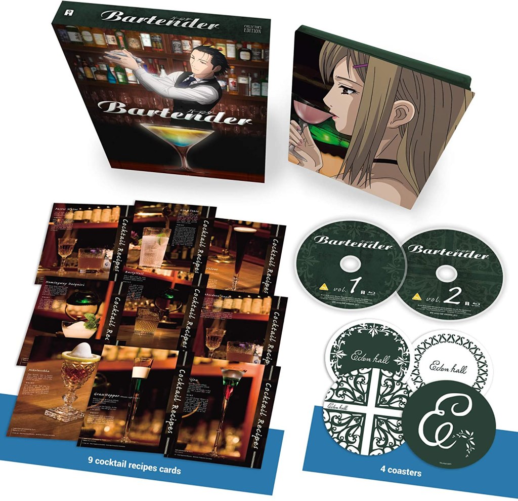 | Disc Extras include Textless OP/ED Songs. CE Extras include Rigid Box, 9 cocktail recipe cards, 4 exclusive “Eden Hall” coasters. |