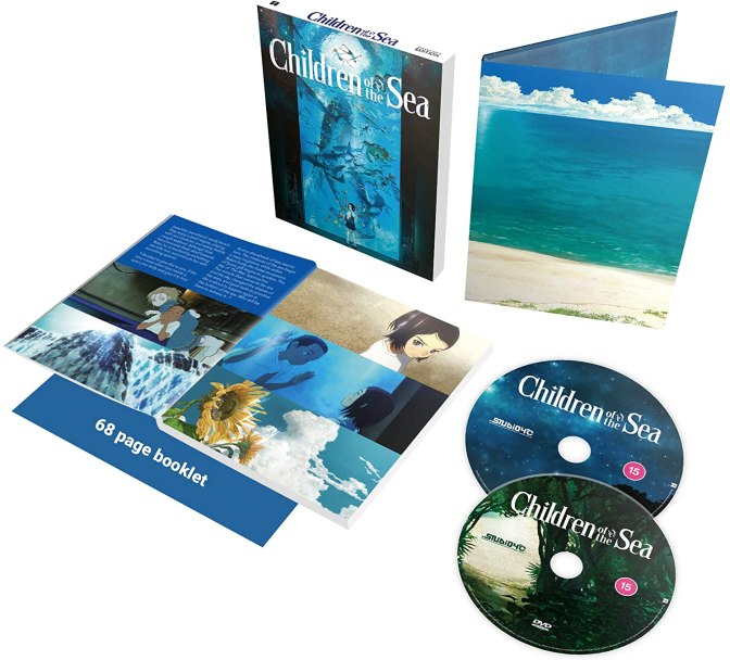 | Disc Extras include Intro at Animation is Film, Directing Children of the Sea, Animation Breakdown, Interview with Composer Joe Hisaishi, Japanese Cast Interview, Art Gallery, Selected Storyboards, Turep – Looking for Children of the Sea, Studio 4C Makes a Meal, Making of the Poster, Trailers. CE Extras include Rigid Box, 68-page Booklet. |