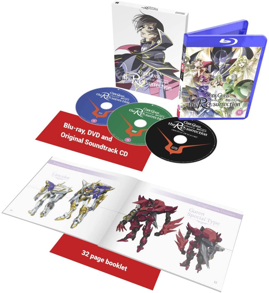 | Disc Extras include Code Geass: Lelouch of the Resurrection: A Casual Conversation with Donald Shults & Elizabeth Maxwell, Visual Commentary, Commercials. CE Extras include Rigid Box, Original Soundtrack CD, 32-page Booklet |