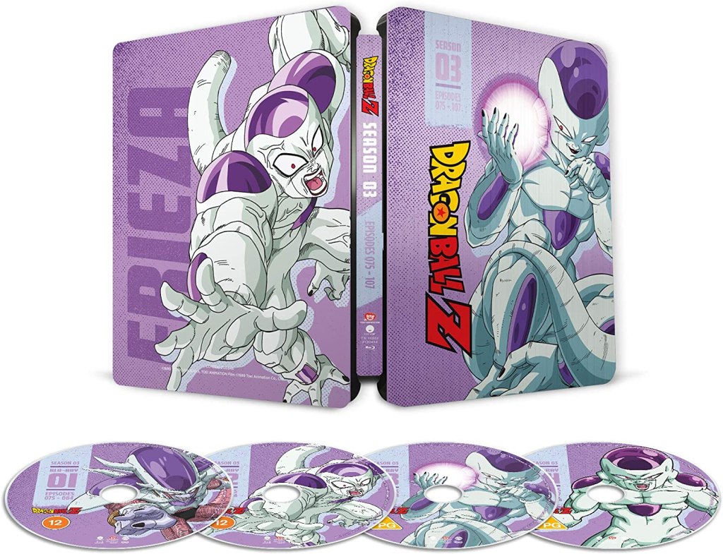 | Dragon Ball Z Season 3 £44.99 SRP / Amazon Exc. Limited Edition Blu-ray Steelbook release £39.99 SRP / Regular Blu-ray release English & Japanese audio with English subtitles Episodes 75-107 SB: Amazon: £33.01 BD: Amazon: £32.99 / AOL: £27.99 / UP1: £23.49 |