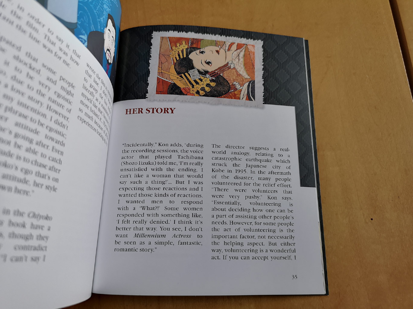 Anime Limited’s collector’s edition for Millennium Actress carries over the traditional packaging style that the distributor likes to go for.
