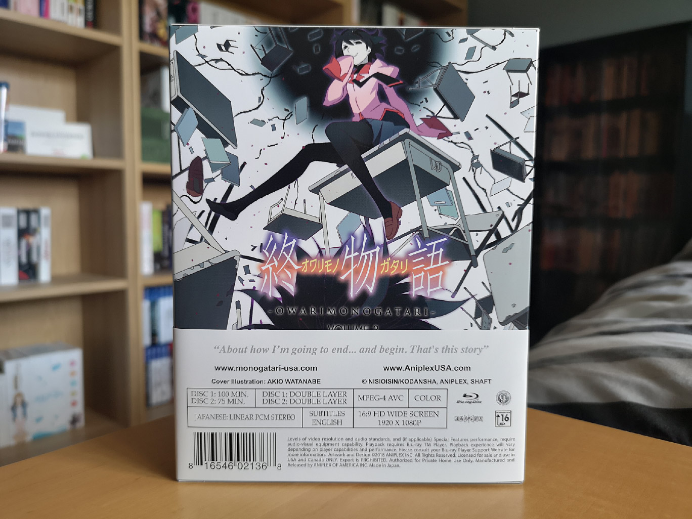 Monogatari series: Final Season has been licensed and released in the United States and Canada by Aniplex of America. MVM did bring some of these arcs over to the UK via sub-license, however I had already began supporting the series via the Aniplex releases since January 2014 so for consistency reasons I continued with them. MVM has yet to acquire Koyomimonogatari, Owarimonogatari Volume 3 and Zoku Owarimonogatari as of January 2021 for the United Kingdom and Ireland.