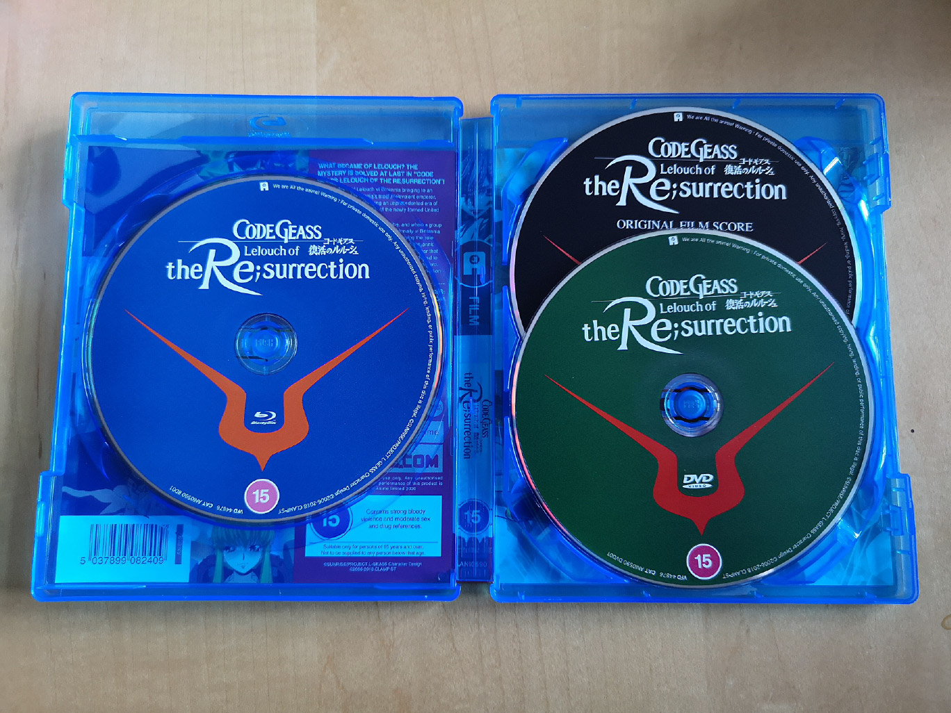 The collector’s edition release for Code Geass: Lelouch of the Re;surrection has the film presented across a single Blu-ray and DVD disc. The encode and authoring were done by Funimation, as they released the film first allowing Anime Limited to save themselves the hassle of making their own. The audio options available for the film include Japanese with English subtitles and the Funimation English dub.