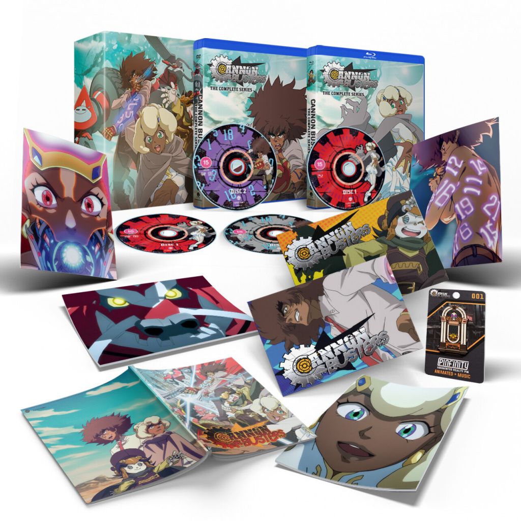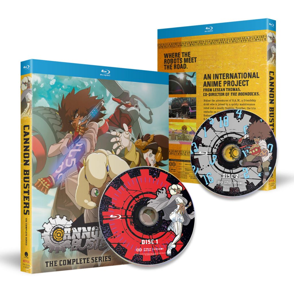 | Disc Extras include Cannon Busters – A Journey Behind the Scenes, Episode 1 Animatic, Trailer, Textless OP/ED Songs. Limited Edition include Rigid Box, 64-page Opening & Endings Booklet, AR Enabled “Hangman’s Saloon Jukebox” Pin, and a collectible box to house these physical items. |