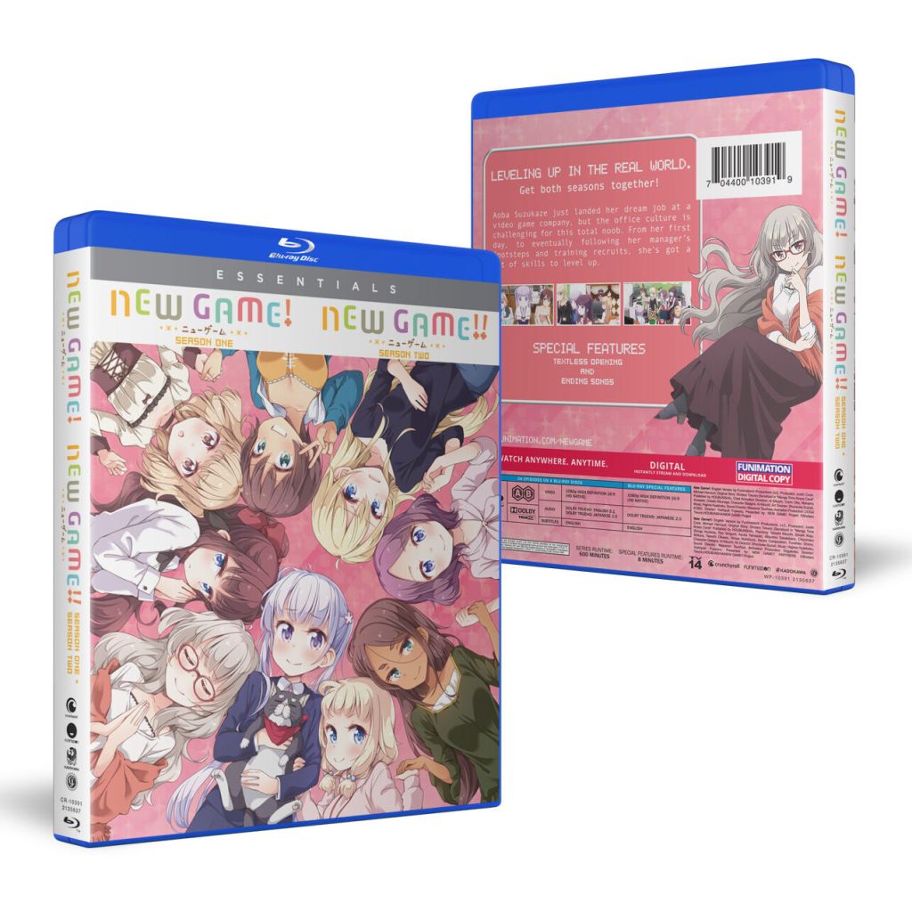 | NEW GAME! & NEW GAME!! $34.98 SRP / Essentials Blu-ray release English & Japanese audio with English subtitles Episodes 1-12 (S1) + 1-12 (S2) |