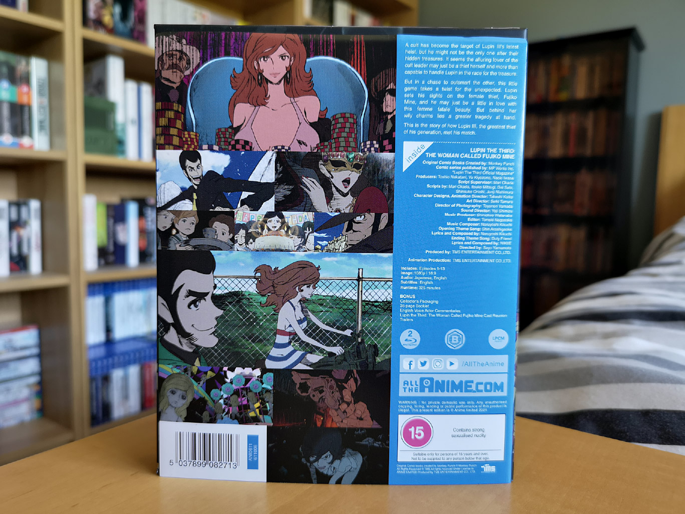 The collector’s edition release for Lupin the Third: The Woman Called Fujiko Mine contains the series across two Blu-ray discs, with 13 episodes total. The encoding and authoring is an interesting one as the previous UK & US releases were handled by Funimation, but now with Discotek taking over the license in the US, they have re-authored the release which Anime Limited will be using.