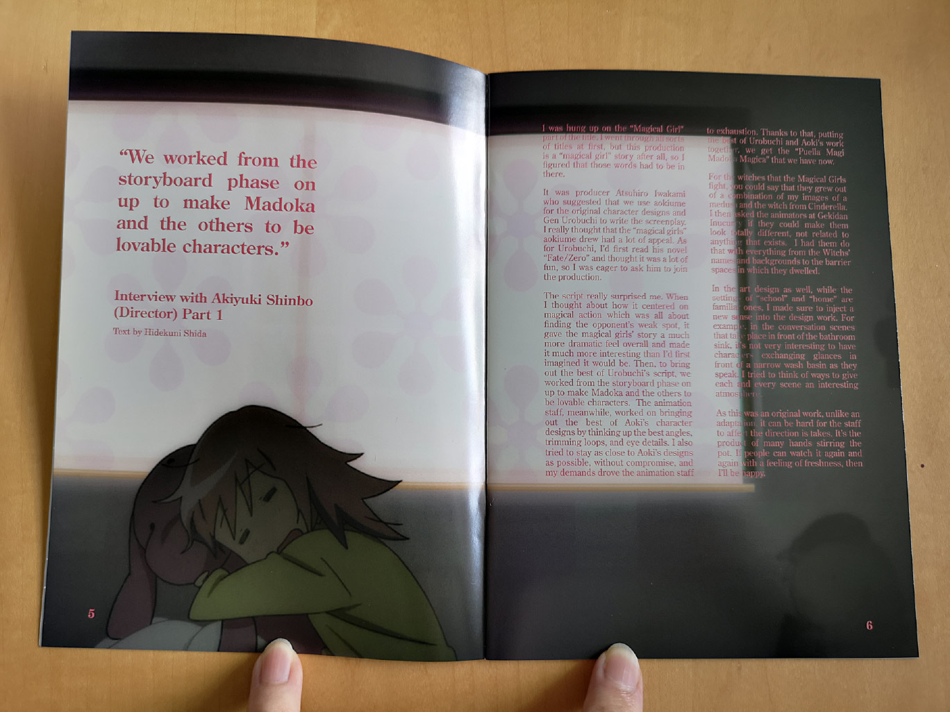 The staff who worked on Puella Magi Madoka Magica is quite note-worthy. You have the directors Yukihiro Miyamoto (Fate/Extra, Nisekoi Season 2) and Akiyuki Shinbo (March comes in like a Lion, Monogatari), the writer Gen Urobuchi (Fate/Zero, Song of Saya: Saya no Uta), and music composer Yuki Kajiura (Fate/Zero, Sword Art Online). And not to mention you have the animation studio SHAFT (March comes in like a Lion, Monogatari), who like to show off the animation a lot and provide neck tilt scenes whenever possible.