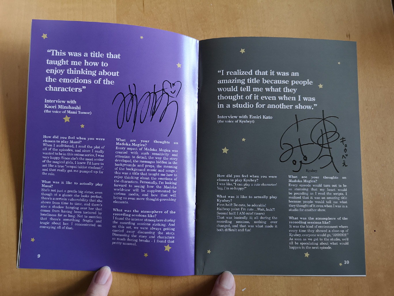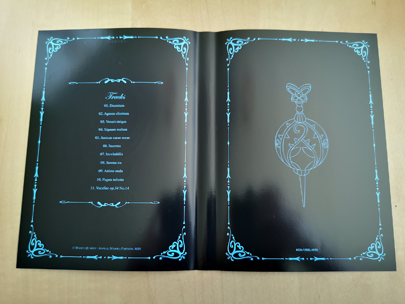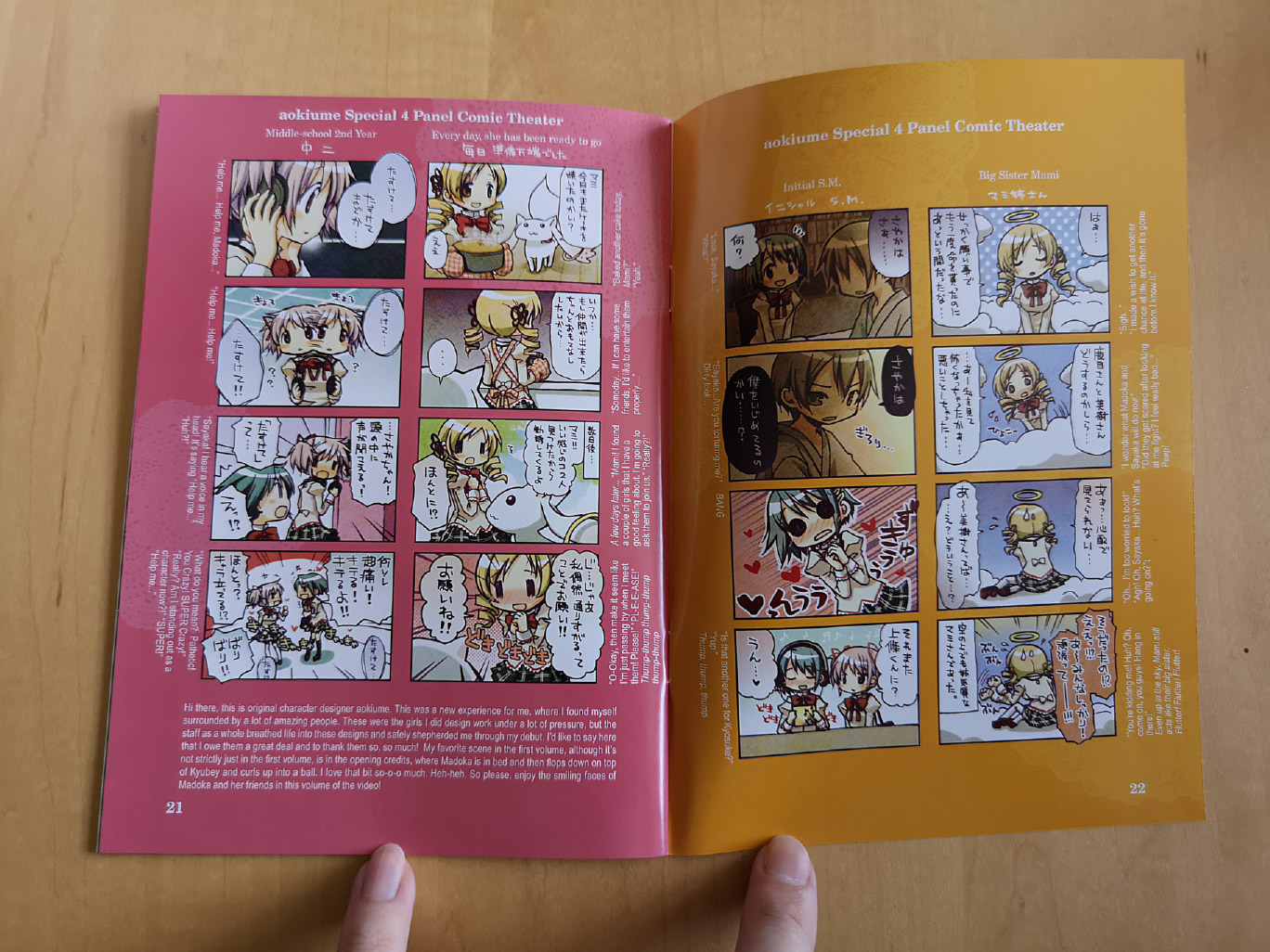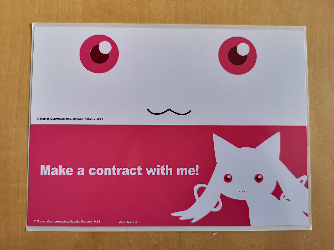 The other physical items included were a 24-page booklet with staff & voice actor interviews, character design artwork and exclusive art gallery by Inucurry, and a special 4-panel manga by Aokiume. Plus there’s a double-sided poster, “Preview Illustration” Post cards, and for the first volume you also have Kyubey stickers.