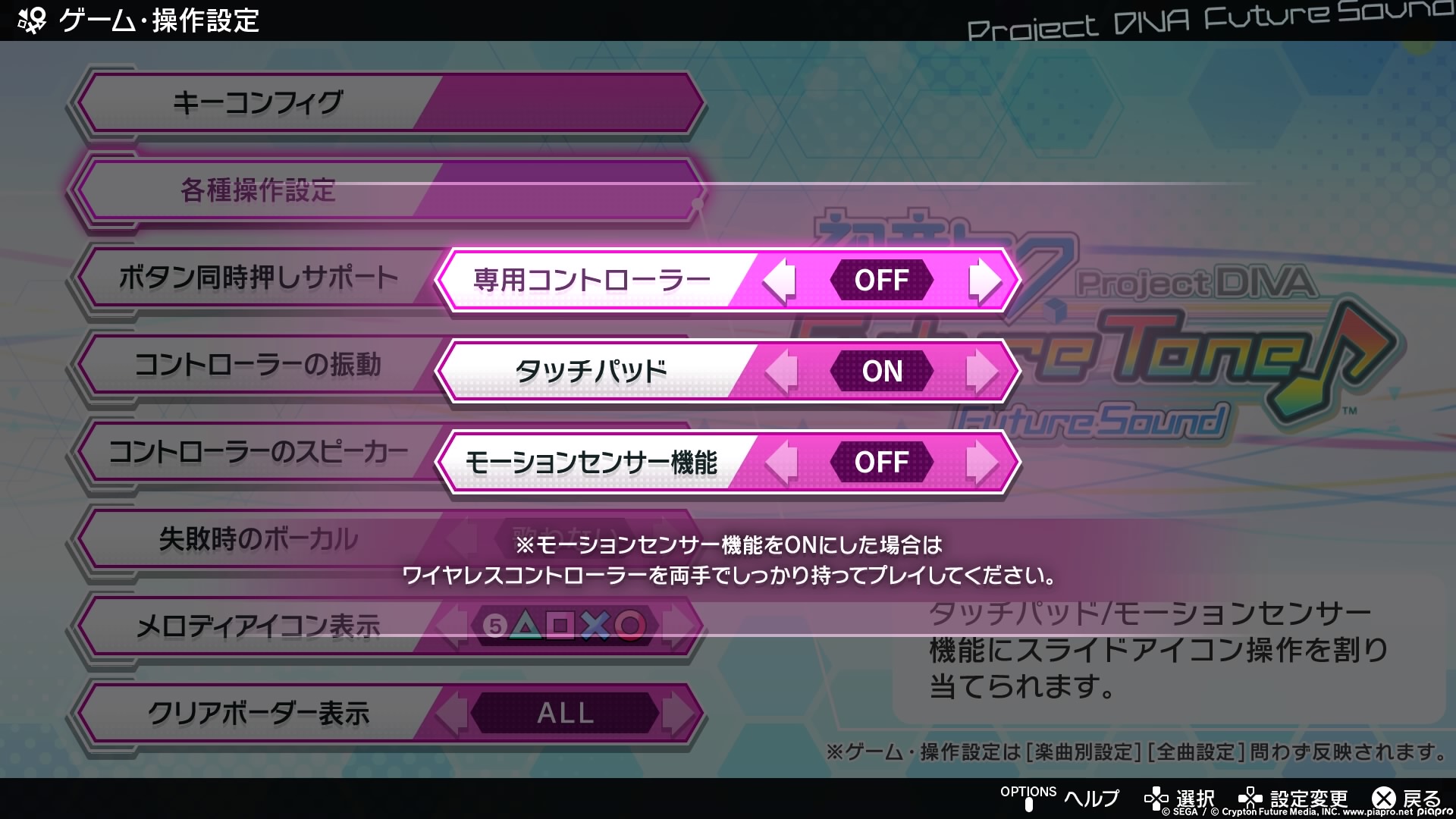 The button customisation is split into different options which includes the button layout, slide options which you can turn on/off the PlayStation 4 motion and touch pad controls, controller assists for toggle on/off multiple button combination notes which won’t work on Extreme & Extra Extreme difficulties, controller vibration on/off, controller speaker on/off, toggle on/off whether Miku & co. sings or not if you miss a note, placement of buttons, and progress meter.