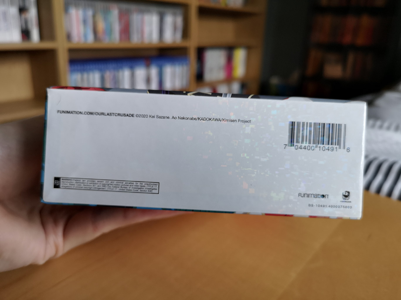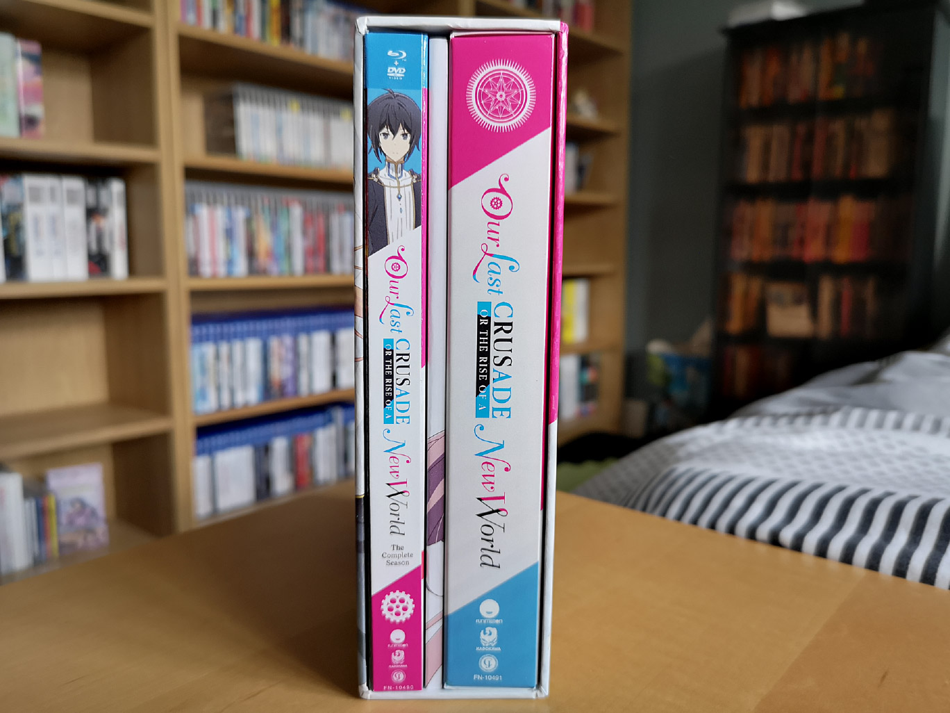 Funimation has been providing limited editions with a fair bit of physical content in recent years, but sometimes they tend to split the physical items into their own cardboard boxes or inside the rigid box. Our Last Crusade or the Rise of a New World falls into the same category as the latter, like Dr. STONE and Fire Force.