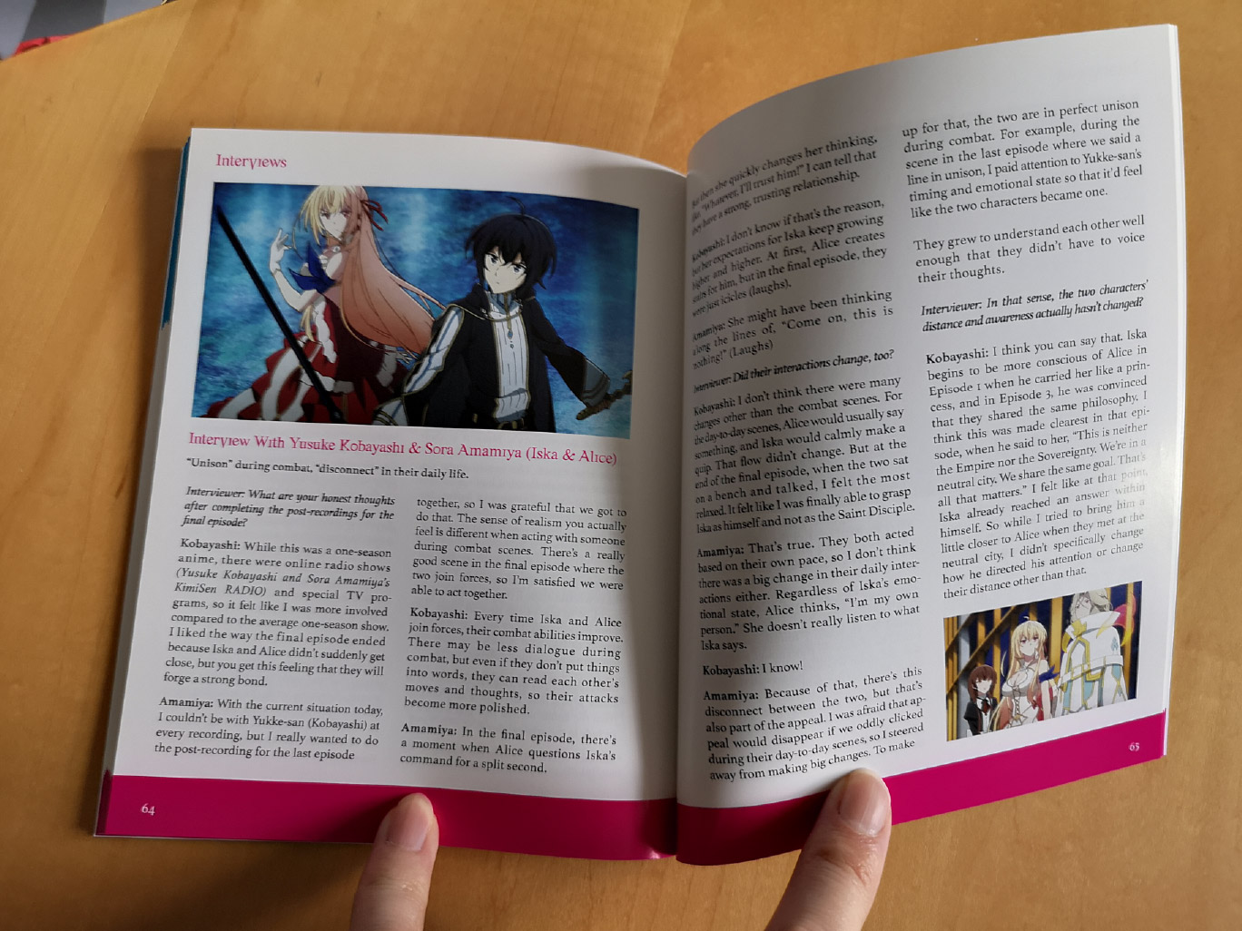 The limited edition box set features a rigid box that houses the show’s amaray case and a slipcase as well as a booklet and a spare cardboard box that includes the fabric poster. While limited editions from Funimation sometimes have exclusive artwork, this is just the same as the regular edition. The booklet offers character designs, production artwork on the background and visuals and also interviews with both the director, author and main two leads in the Japanese cast.