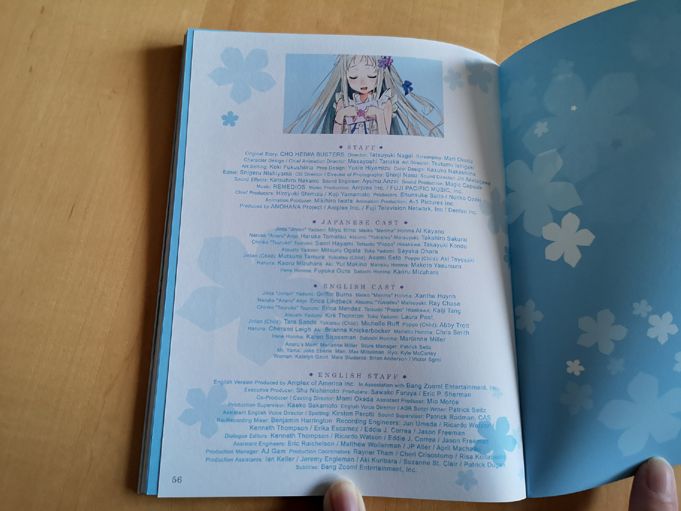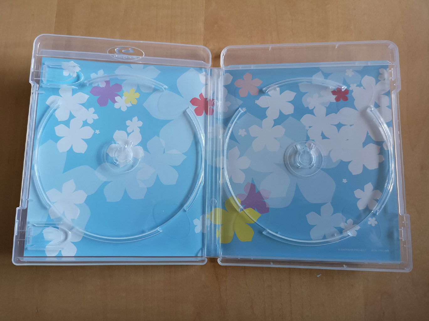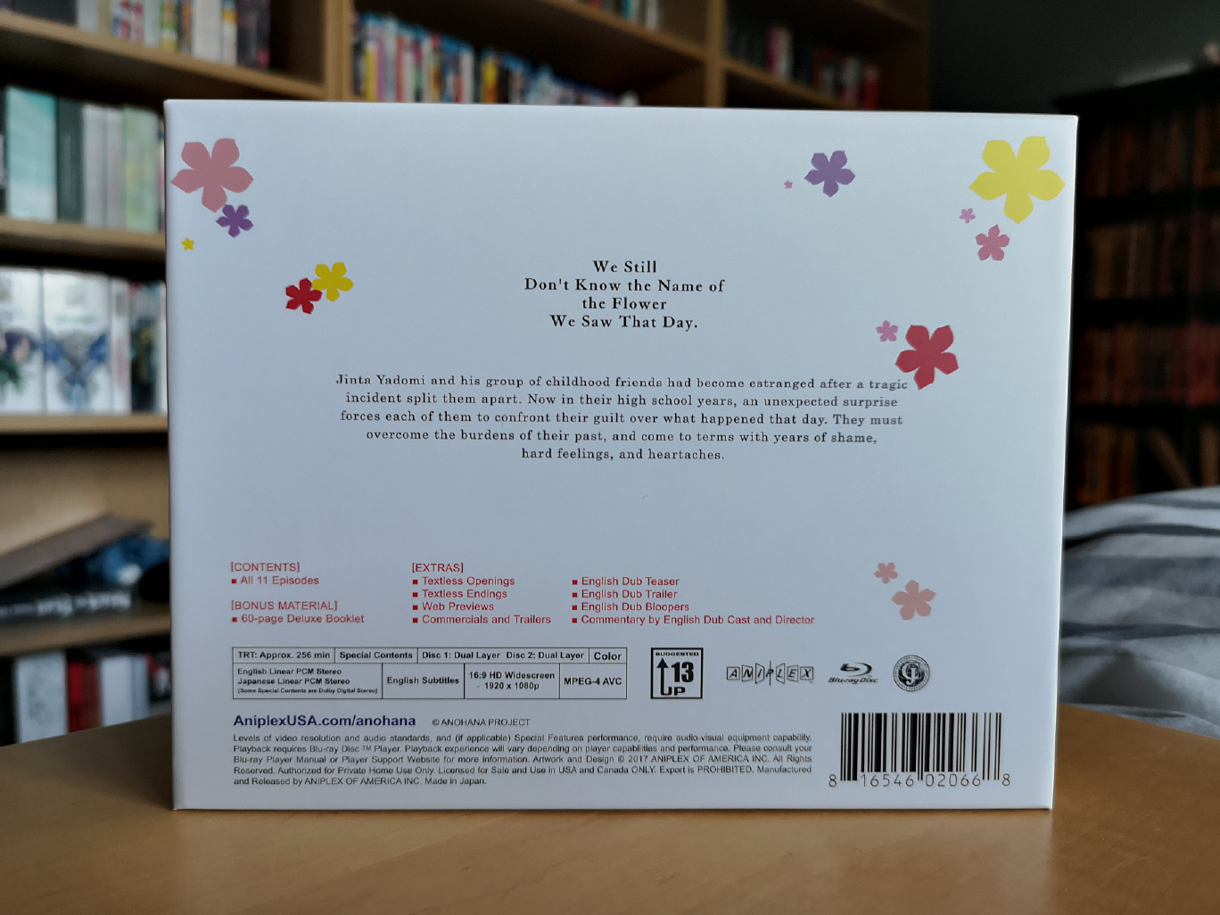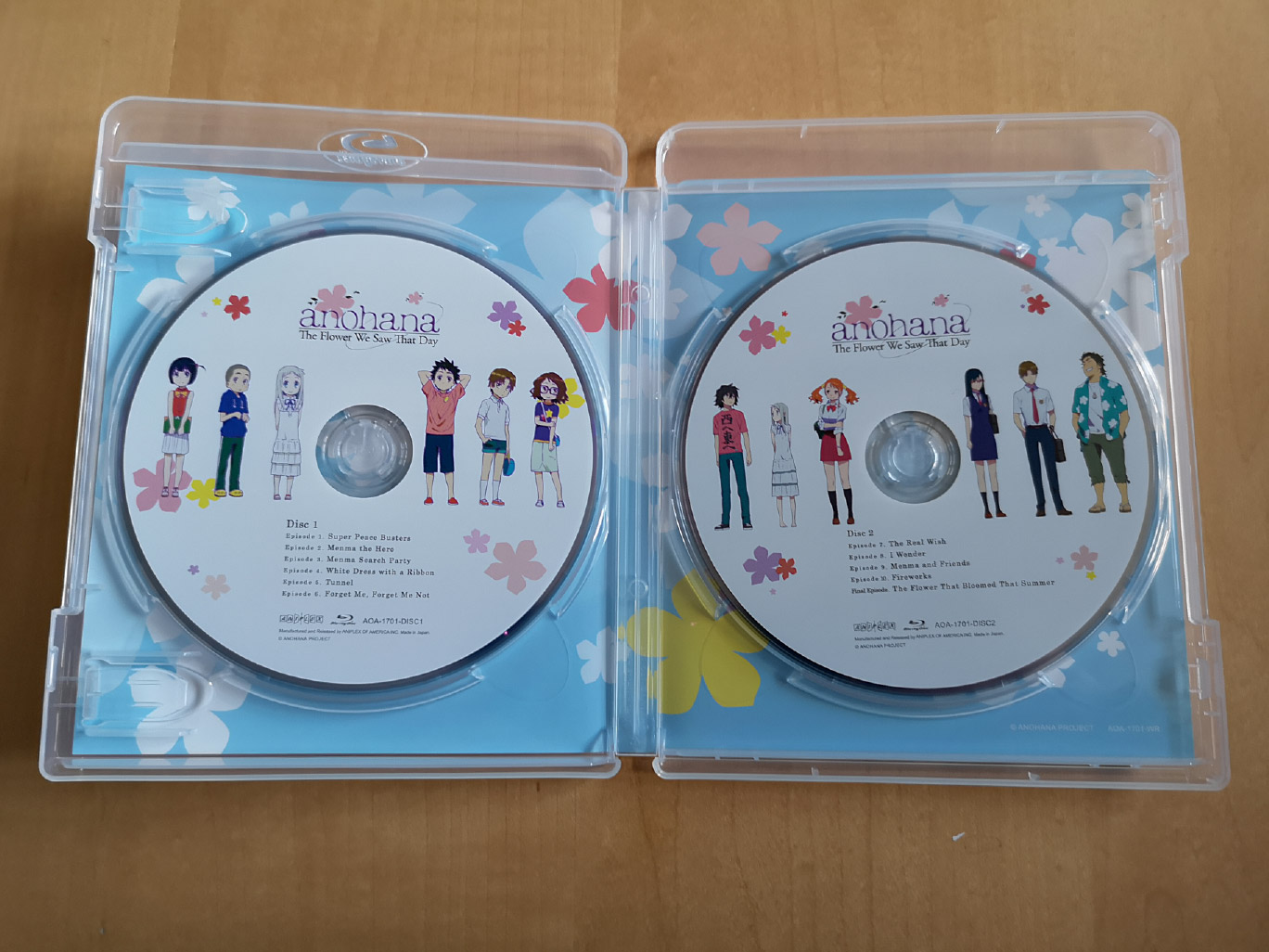 The limited edition release for Anohana: The Flower We Saw That Day contains all 11 episodes across two Blu-ray discs which were authored/encoded by Aniplex. While NIS America released the series subtitled only, the audio options available for the Aniplex of America release include Japanese with English subtitles and a Bang Zoom! Entertainment English dub.