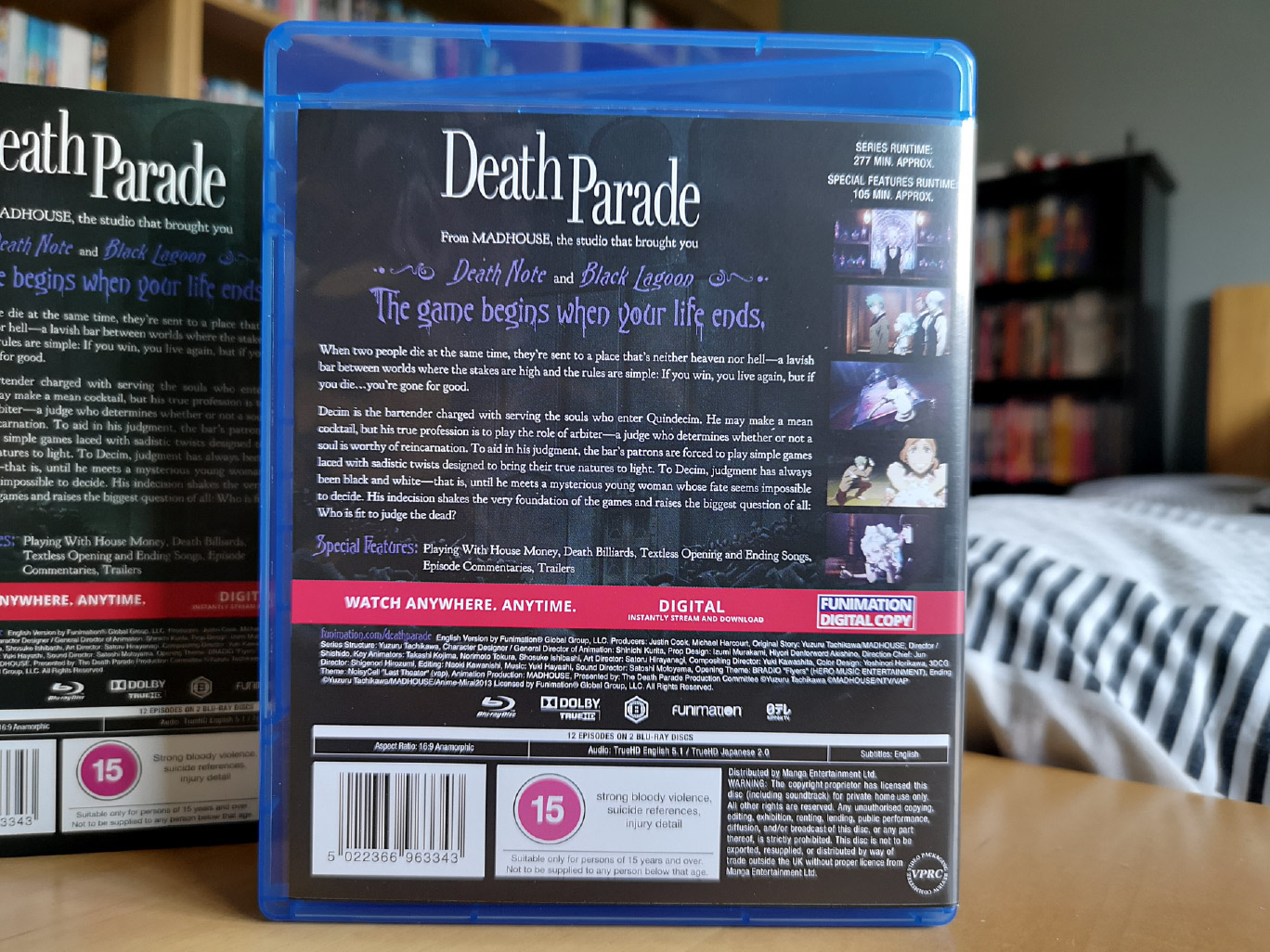 Then, as Funimation eventually absorbed Manga Entertainment completely to which the company is now simply known as Funimation UK, Death Parade came back with not just a standard Blu-ray but also a limited edition.
