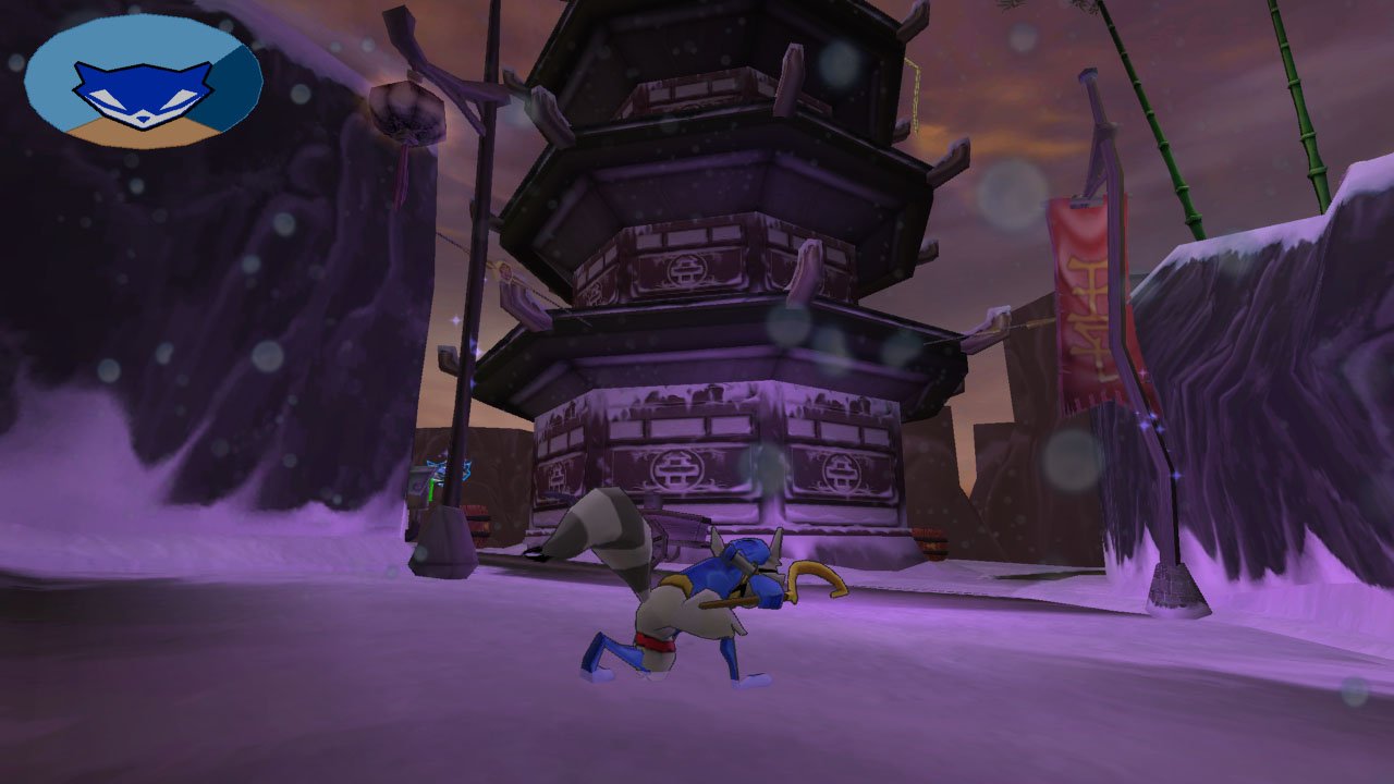 While Jak & Daxter and Ratchet & Clank have more modern health systems, Sly Cooper is more on the lines of the classic approach seen in Mario and Crash Bandicoot where one life equals death. If you collect 100 coins you unlock a special shield that will keep you alive if you get hit once but there will be a special move that will allow you to be immune to death if you fall off a cliff but that’s only until much later in the game. If you lose all lives it’s game over, but it will let you replay the level. In fact dying will not erase your collectible progress so that’s very beneficial.