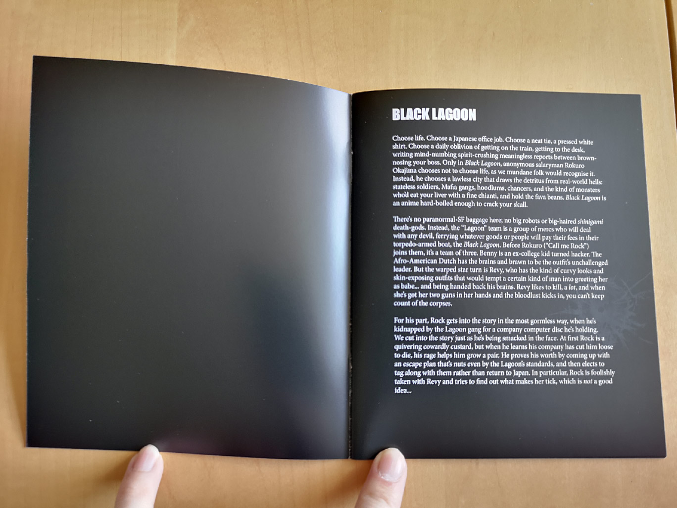 Black Lagoon has had a number of releases in English territories. MVM once put out a large rigid box to house the volumes, while Geneon had Steelbooks. Funimation released the series as a regular collection, though often labelled as part of the Anime Classics before eventually offering their own limited edition set years later. With Anime Limited taking over the UK & Ireland license, they also providing their own collector’s set for the series, though also labelled as a limited edition this time around.
