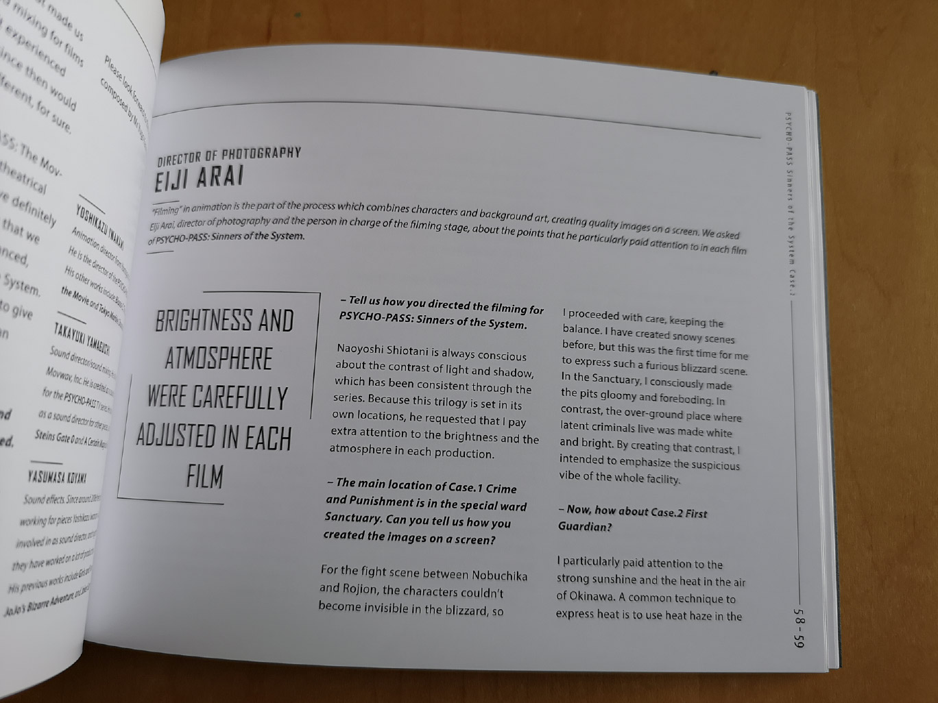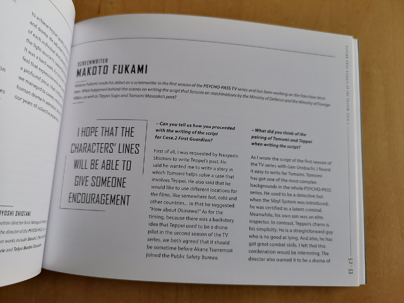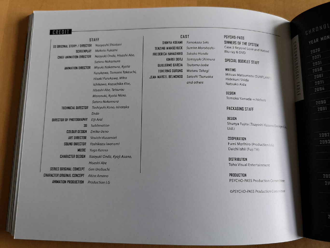Psycho-Pass: Sinners of the System (サイコパス SS), also known as Psycho-Pass SS, is a 2019 original theatrical anime film series by studio Production I.G. The staff credits include director Naoyoshi Shiotani, screenplay writer Ryō Yoshigami for Case 1 and Makoto Fukami for Cases 2 & 3, character designer Hisashi Abe and music composer Yugo Kanno, and the films was theatrically released in Japanese theaters in January & February 2019.