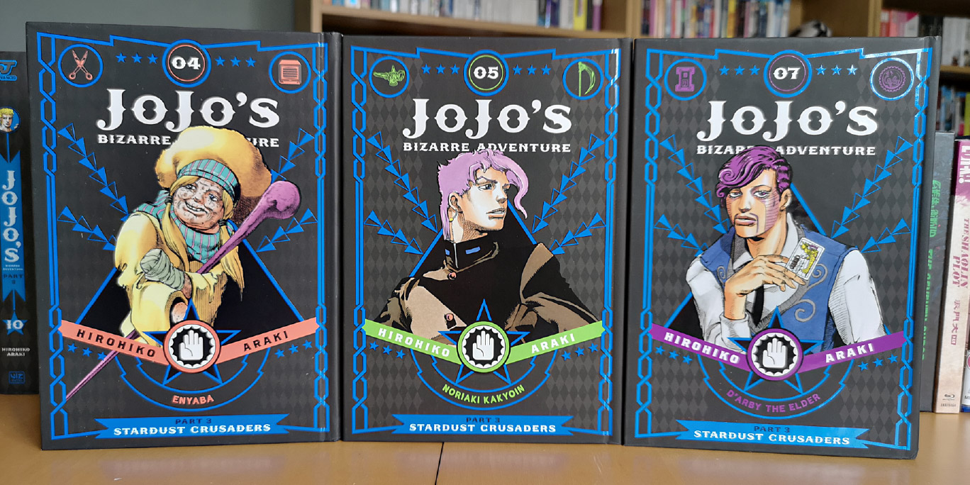 JoJo’s Bizarre Adventure: Stardust Crusaders Volumes 4, 5 & 7 appeared, with Volume 5 arriving later than the other two. I remember these volumes going in and out of stock, so I suppose I jumped in at the right timeframe to keep the series going.