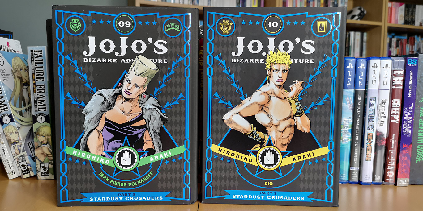 First up we have more JoJo’s Bizarre Adventure: Stardust Crusaders with Volumes 9 & 10, which are the concluding volumes in the series. That just leaves me with Volume 8, which is one of the books I’ve ordered online to complete the series. I actually wasn’t planning on finishing the series until next month, but there’s no harm wrapping it up sooner.