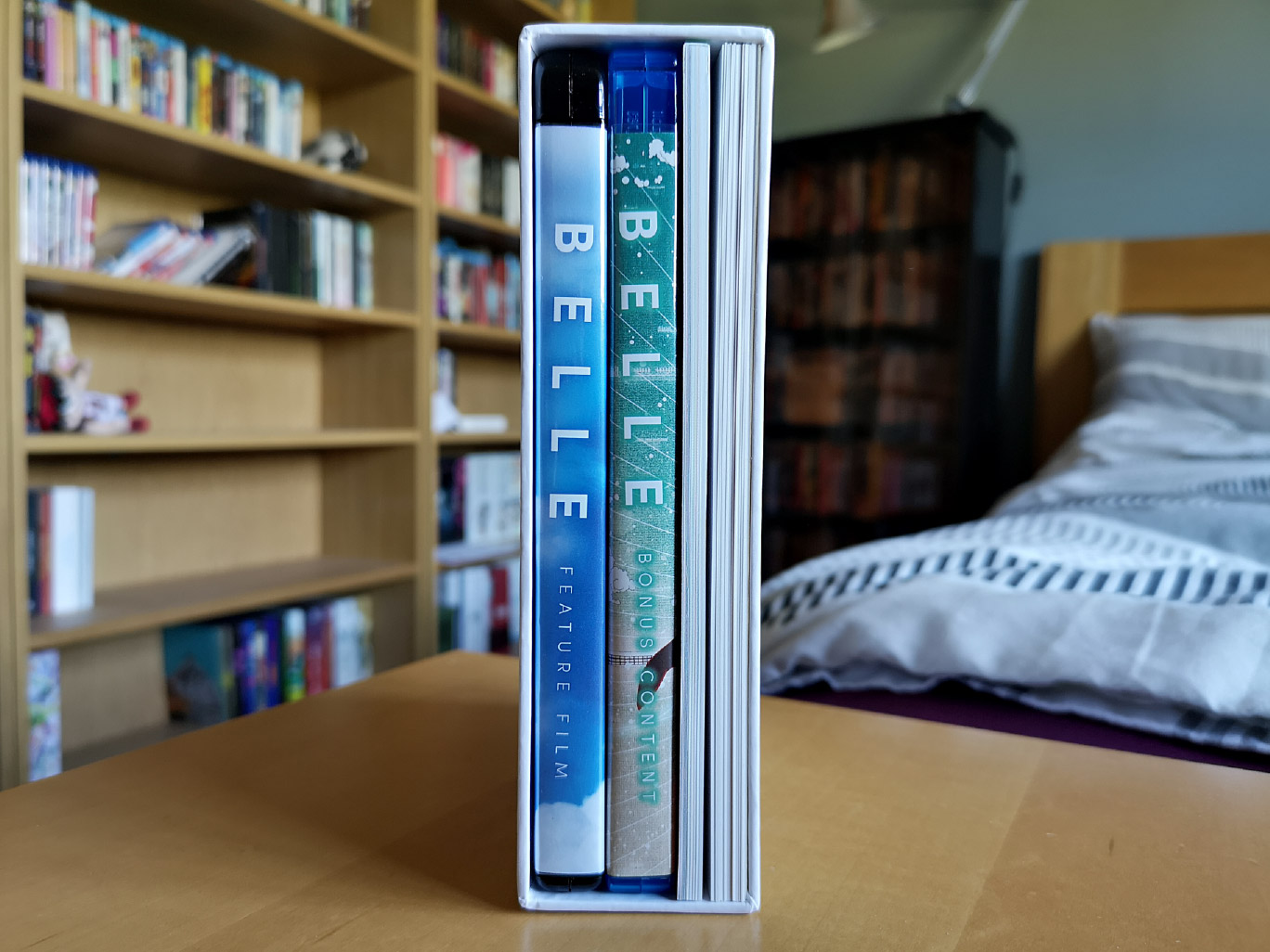 The deluxe edition release for BELLE contains the film across a single 4K Ultra HD disc and single Blu-ray disc, plus two additional Blu-ray discs exclusively for the on-disc bonus features. The audio options for both formats include Japanese with English subtitles and the NYAV Post English dub commissioned by GKIDS. English SDH subtitles are also available for both formats.