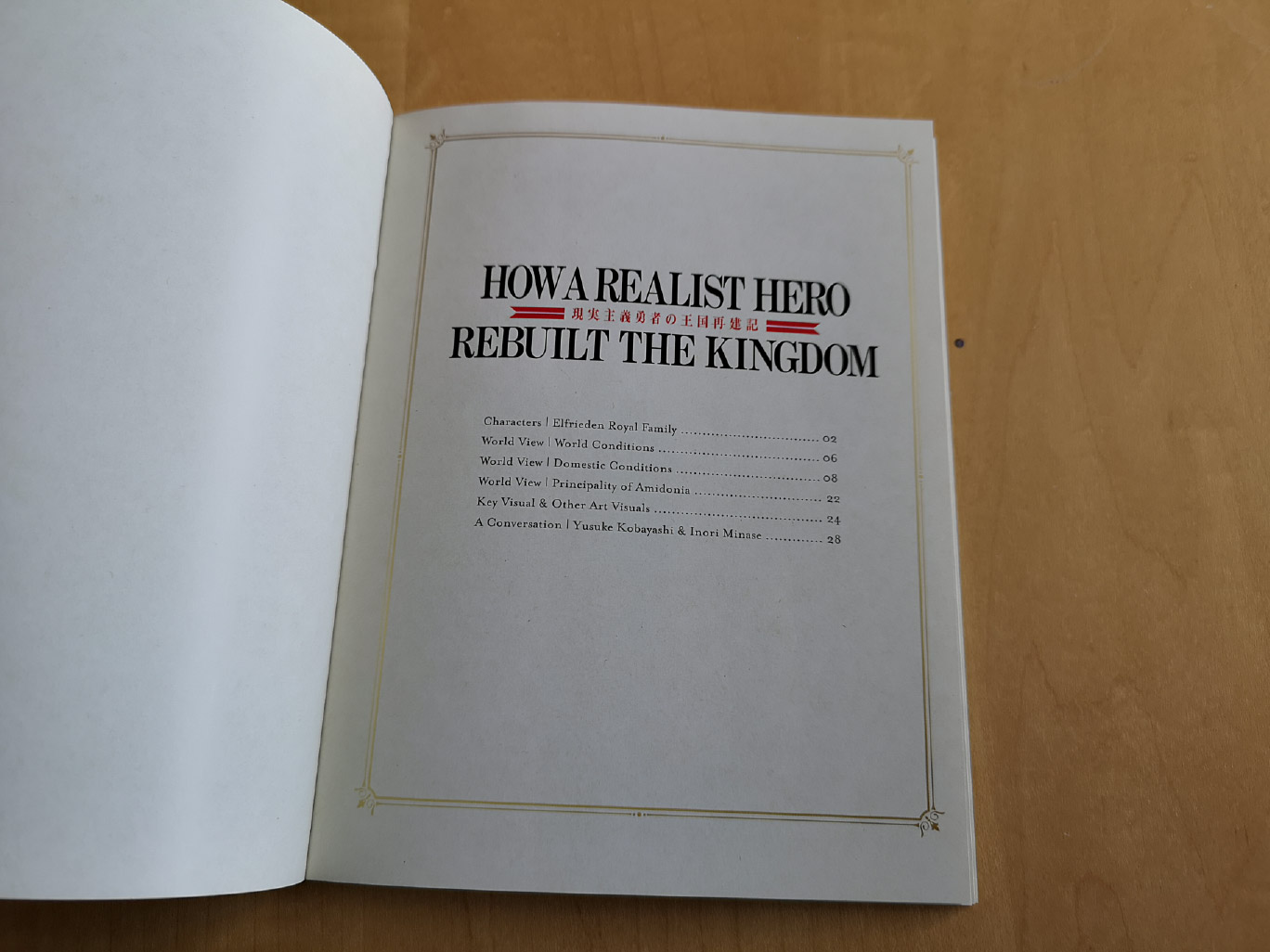 How a Realist Hero Rebuilt the Kingdom (現実主義勇者の王国再建記, Genjitsu Shugi Yūsha no Ōkoku Saikenki) is a 2021 television anime series based on Dojyomaru’s light novel series of the same name. The adaptation is directed by Takashi Watanabe and produced by studio J.C.Staff. Staff credits also include writers Gō Zappa and Hiroshi Ōnogi, and music composed by Akiyuki Tateyama. The anime first aired in Japan in July 2021, with its second cour airing in January 2022.