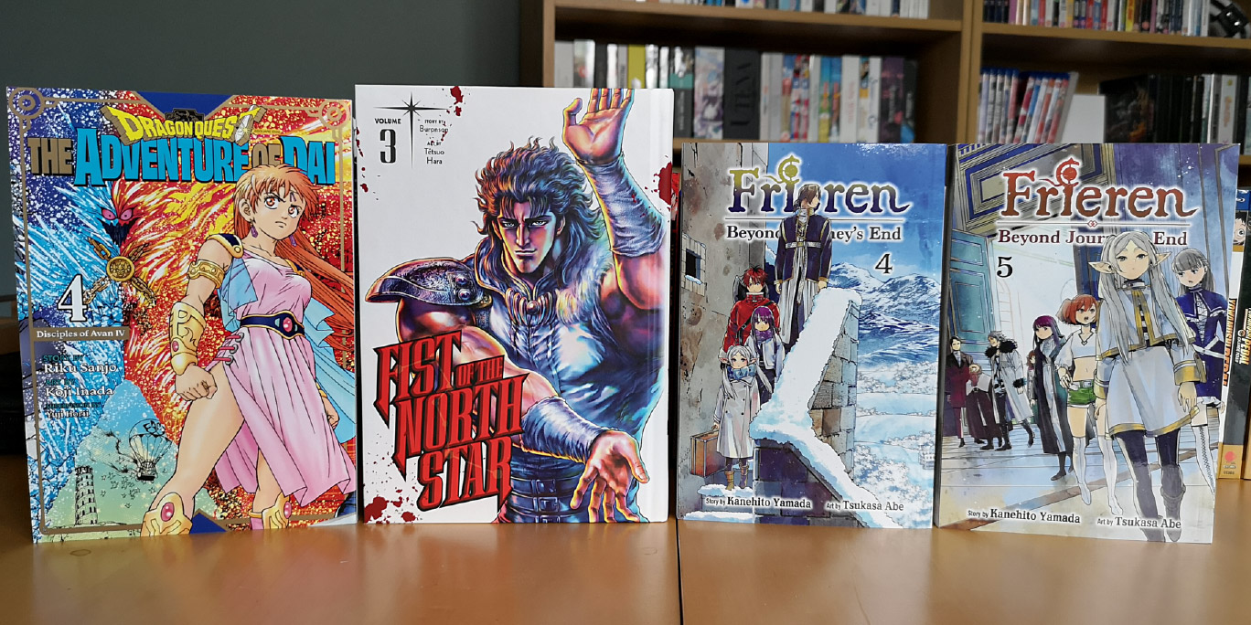 First, we have two larger sized books with Dragon Quest: The Adventure of Dai Volume 4 and Fist of the North Star Volume 3. These two are technically 1.5 volume type sets like the JoJo ones and I have no clue how long the English releases will go on for. Also picked up under the Shonen Sunday label with Viz is Frieren: Beyond Journey’s End Volumes 4 & 5 which is mostly up to date (Volume 6 is out by now in some areas).