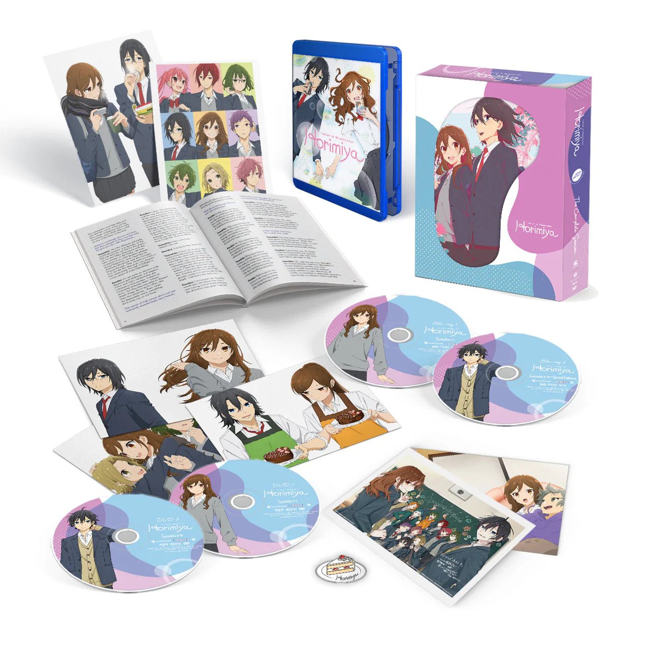 | Voice Actor Panel Web Previews Promo Videos Commercials Textless OP/EDs | Rigid Box with Amaray packaging 72-page Artbook 7 Artcards feat. Magazine Art & Special Illustrations 1.5″ Cake Enamel Pin |
