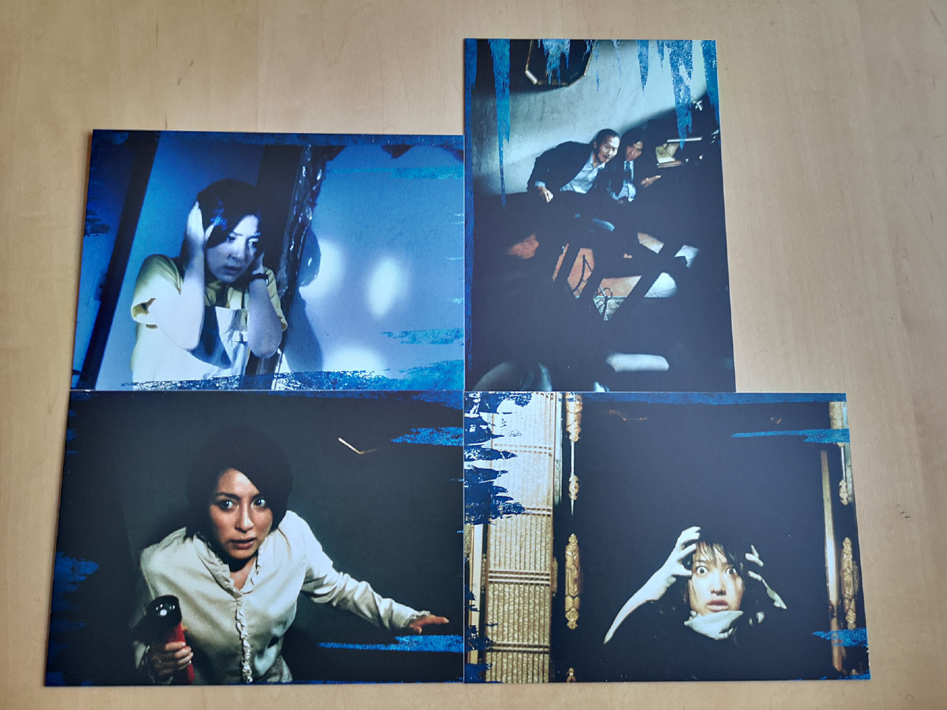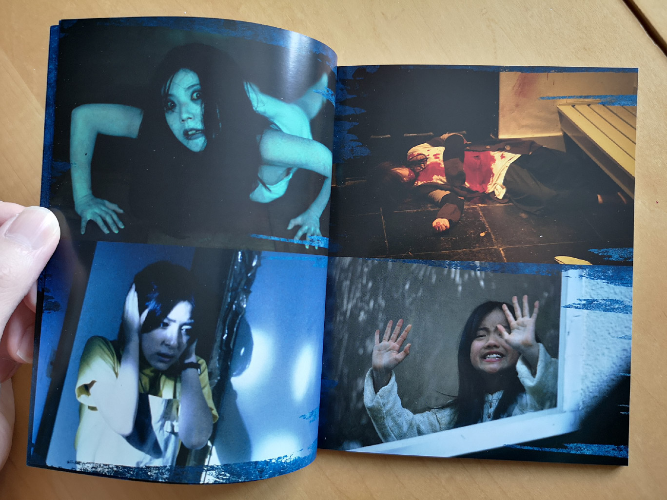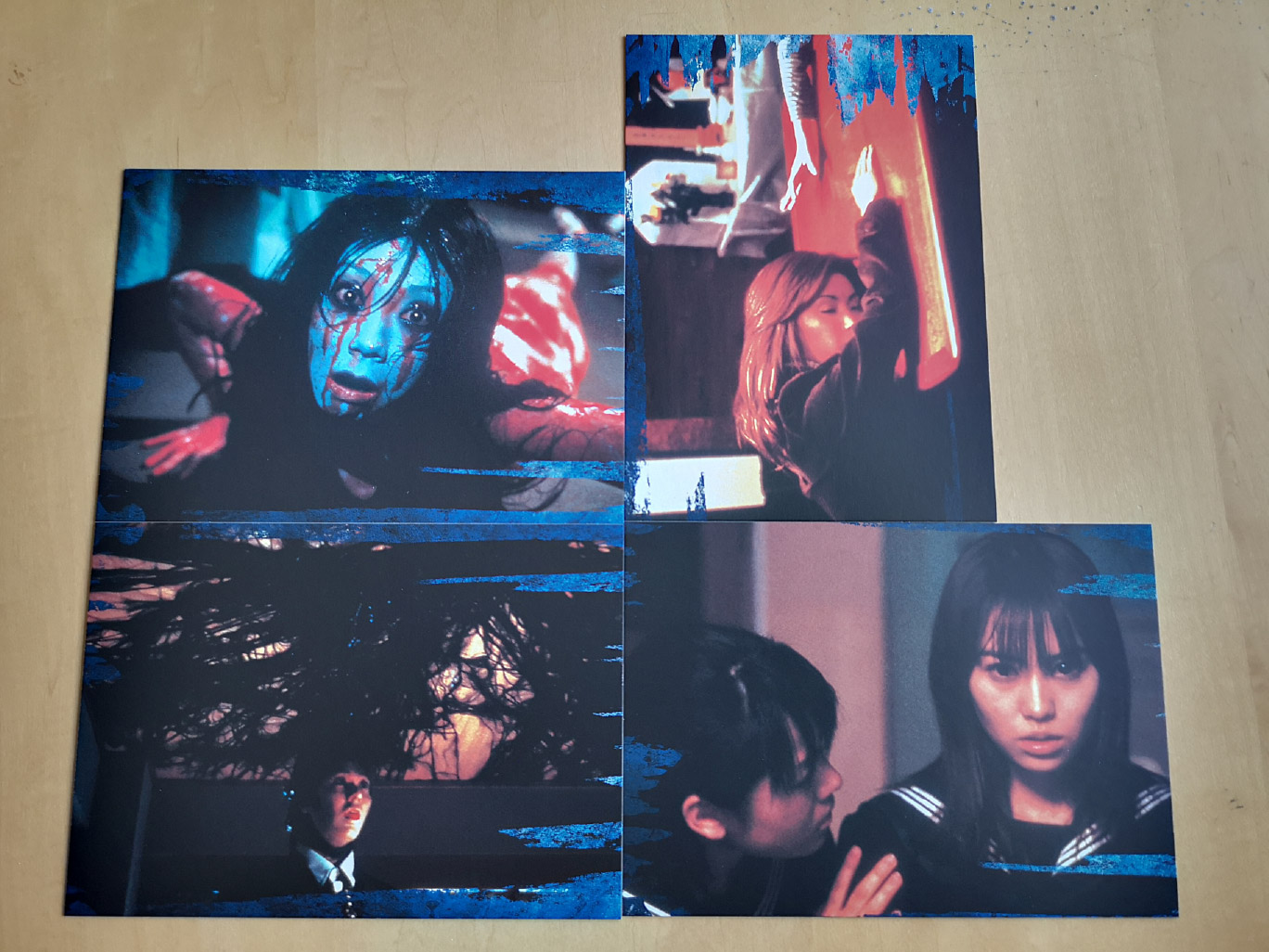 The rigid box set includes three Blu-ray Amaray case and one 4K Ultra HD Amaray case. The UHD case houses both the 4K Ultra HD and Blu-ray discs for Ju-On: The Grudge, while the Amaray cases house the Blu-ray discs for the other films. All four cases house a set of art cards as well. Also included inside the box is a booklet and fold-out poster. The booklet features essays written by Grady Hendrix, James Marsh, Tom Mes, William Carroll and Lindsay Nelson.