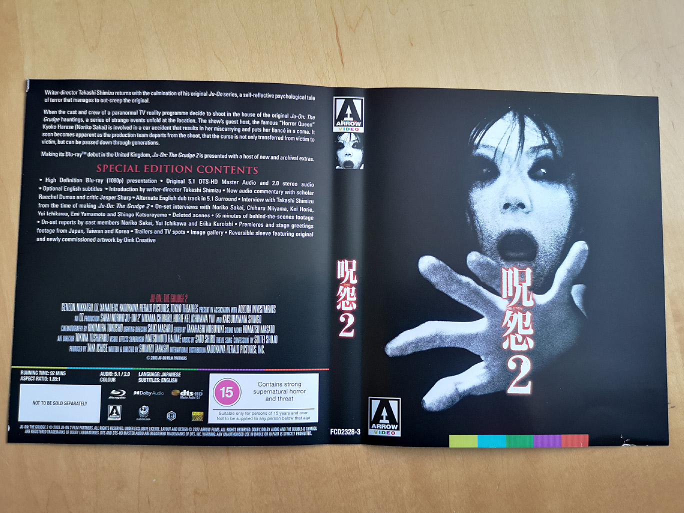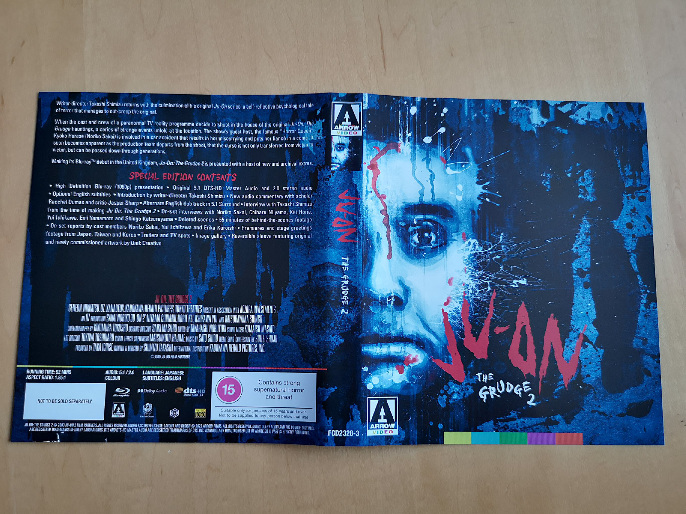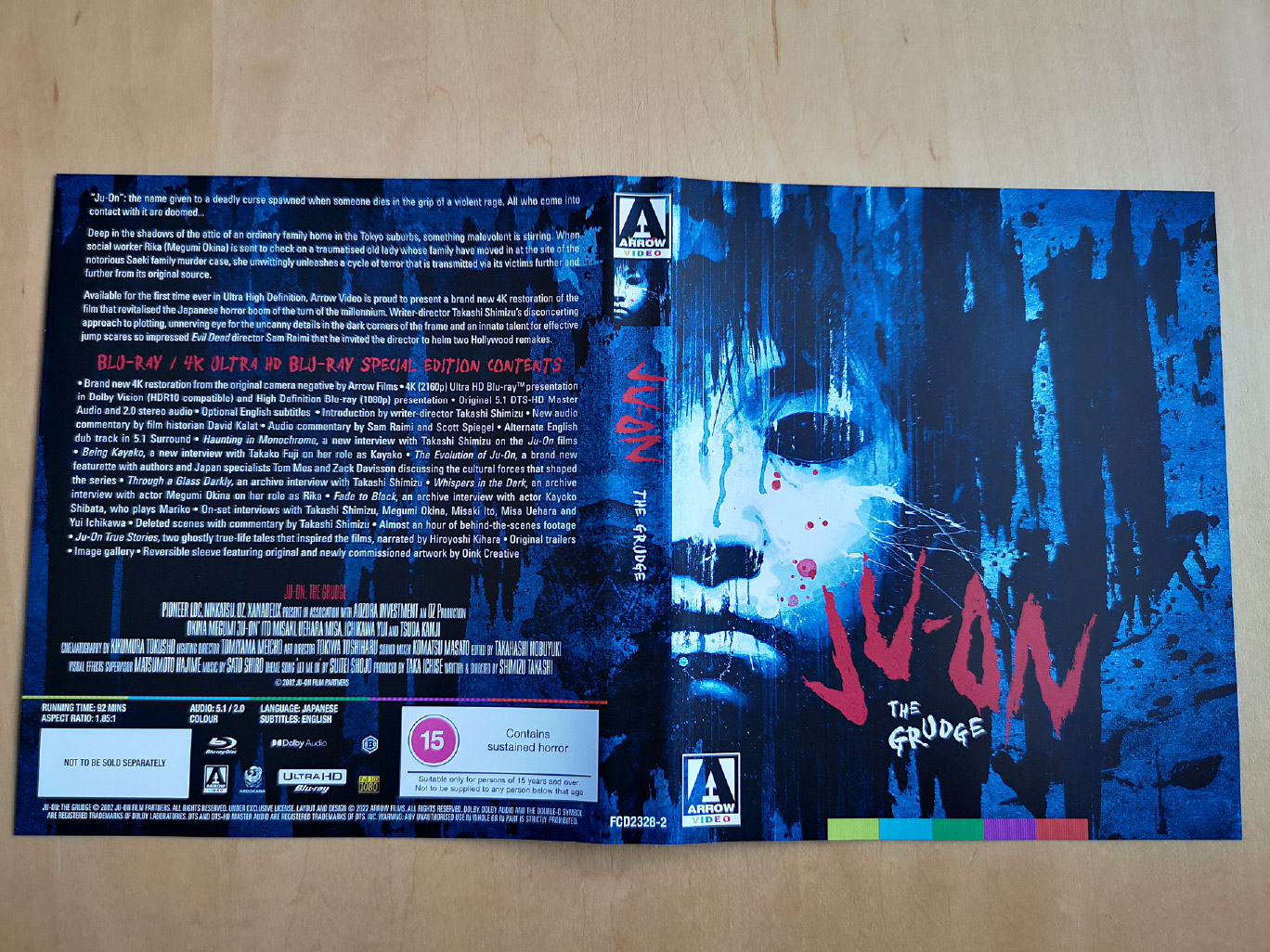 Ju-On: The Grudge is presented on a single 4K Ultra HD disc and Blu-ray disc, with a new 4K restoration from the original camera negatives by Arrow. Dolby Vision HDR is also available on the UHD disc, while both discs have Japanese audio and optional English subtitles.