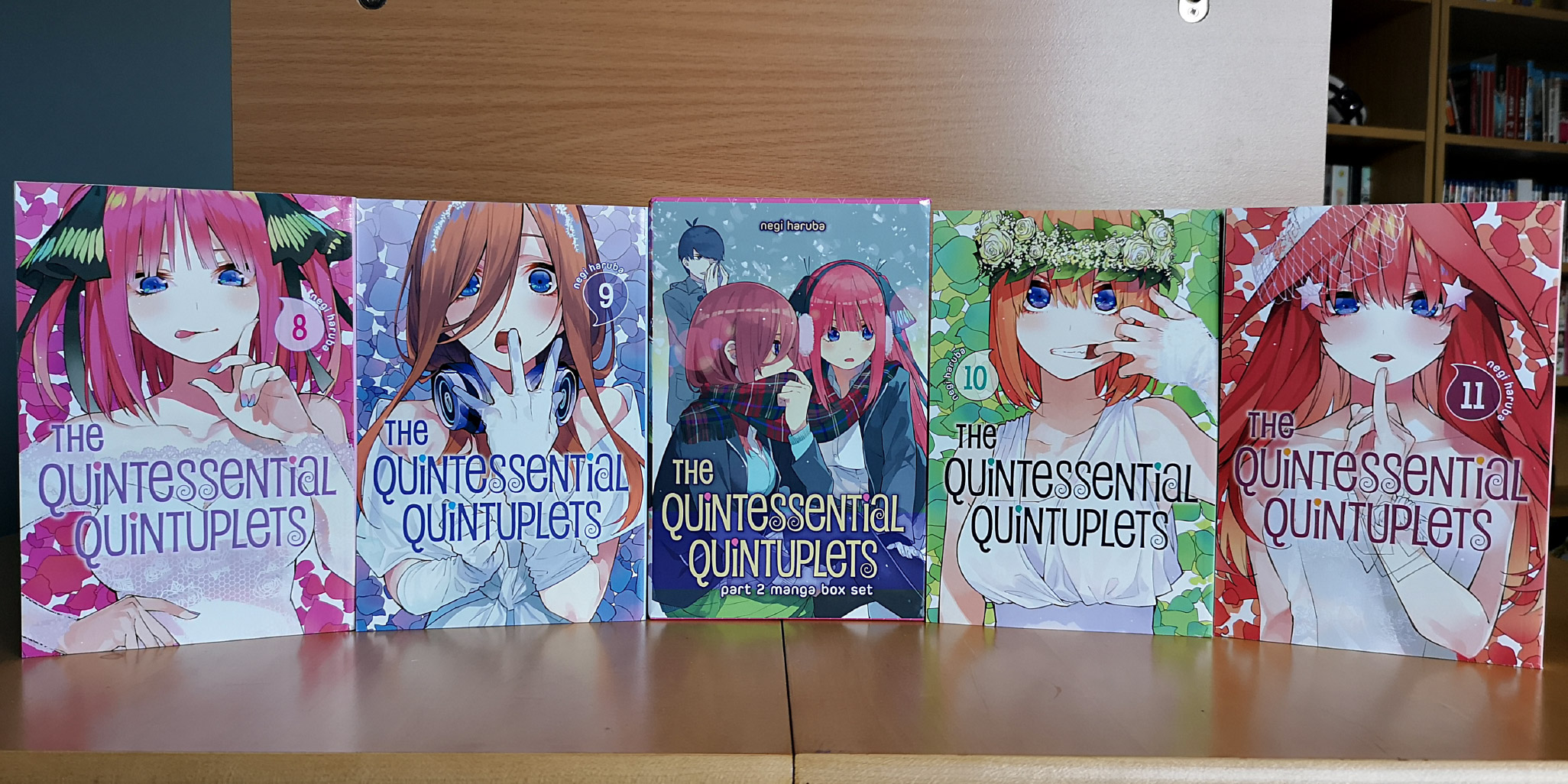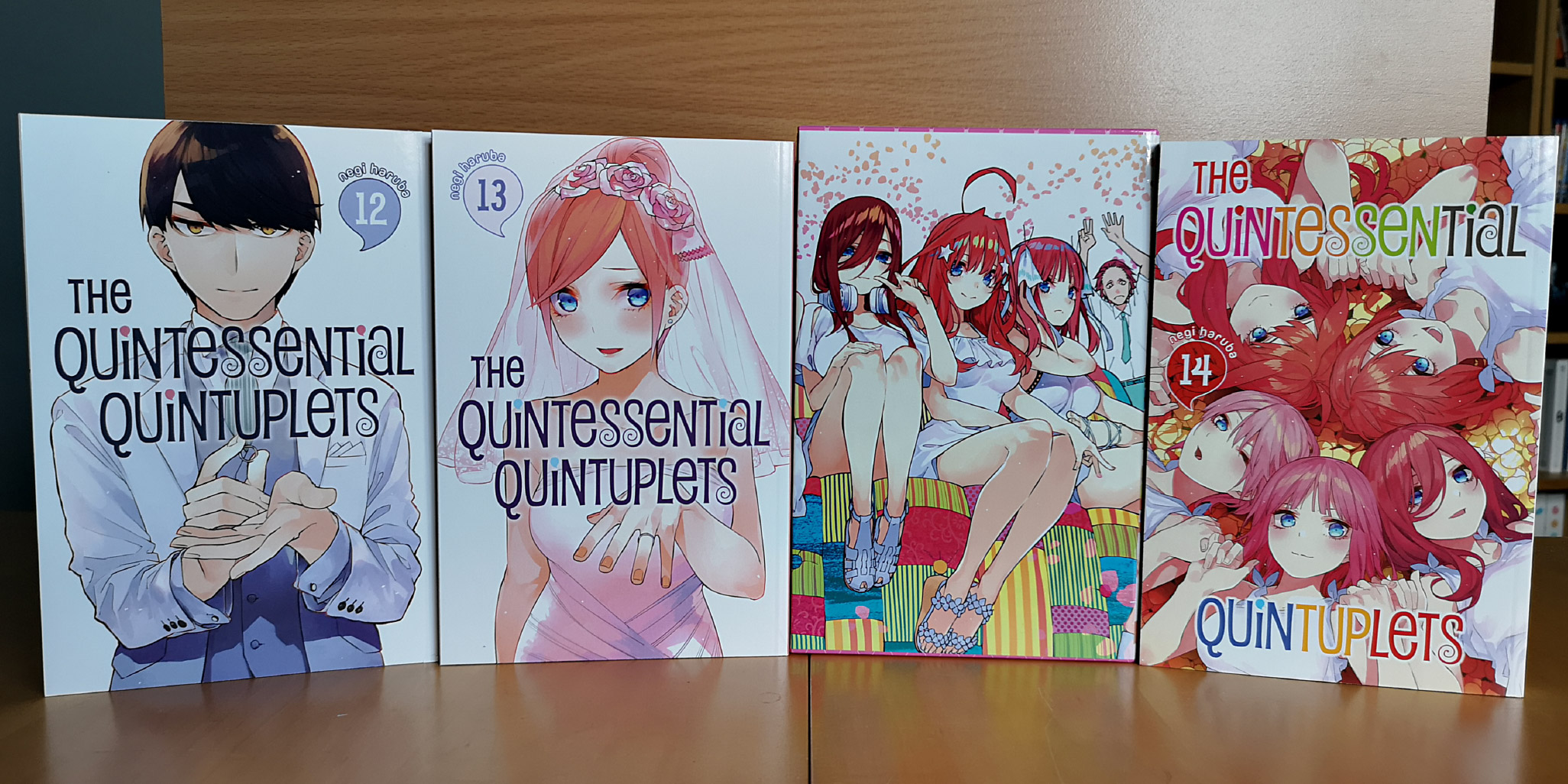 Anywho, this box set includes Volumes 8 to 14, basically the rest of the series. This is now the rest of the manga, hence the complete artwork laid out on two of the sides. Also included are two reversible posters. In Part 1 we had a poster side for four of the five girls (Itsuki, Ichika, Nino & Miku) and in Part 2 we have Yotsuba on two of the four poster sides which I suspect was Kodansha’s way of making up for her missing out on Part 1’s posters. The other two poster sides feature all five together.