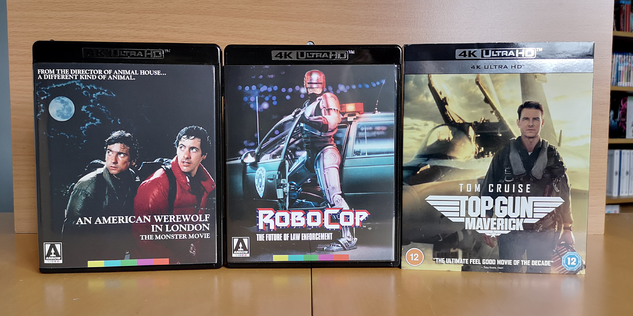 Another bonus 4K Ultra HD haul and here we have some interesting additions to the collection. First up we have my first non-Asian Arrow Video release with Paul Verhoeven’s 1987 Robocop, and this standard edition release focuses on the director’s cut. Also arrived were two films that I gifted to my Mum for Christmas; John Landis’ 1981 An American Werewolf in London, also released by Arrow Video, and Joseph Kosinski’s Top Gun: Maverick that just came out recently. Interestingly the latter is not a combo pack which is pretty uncommon for Hollywood films.